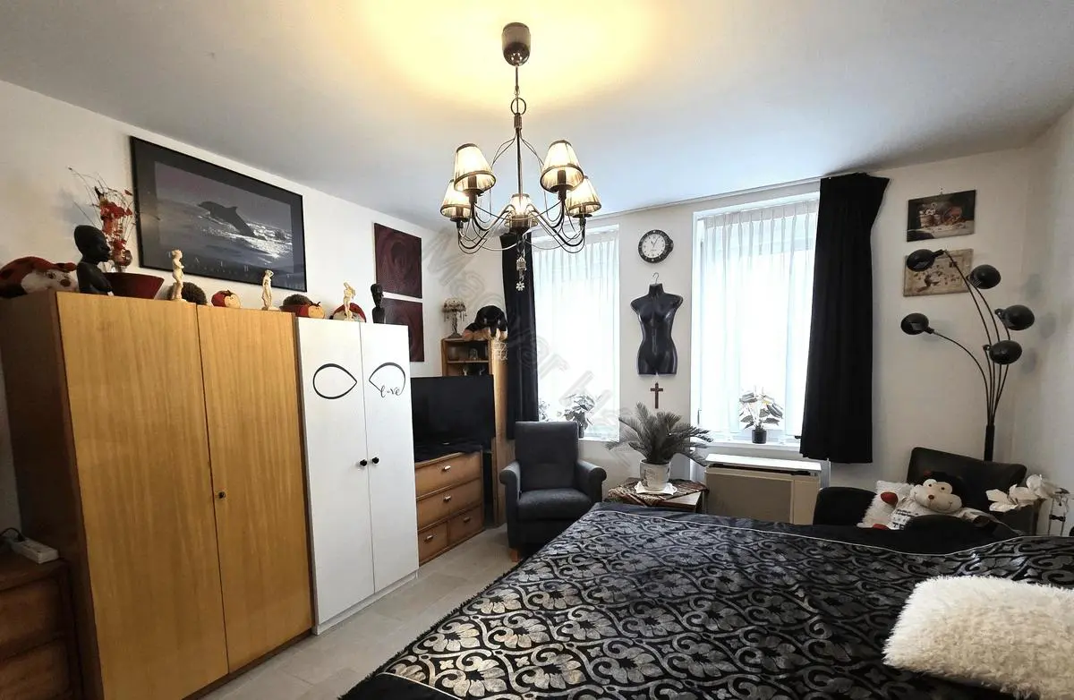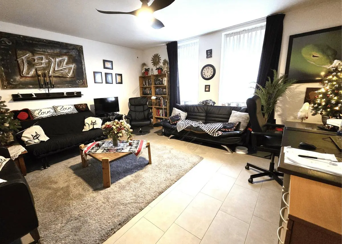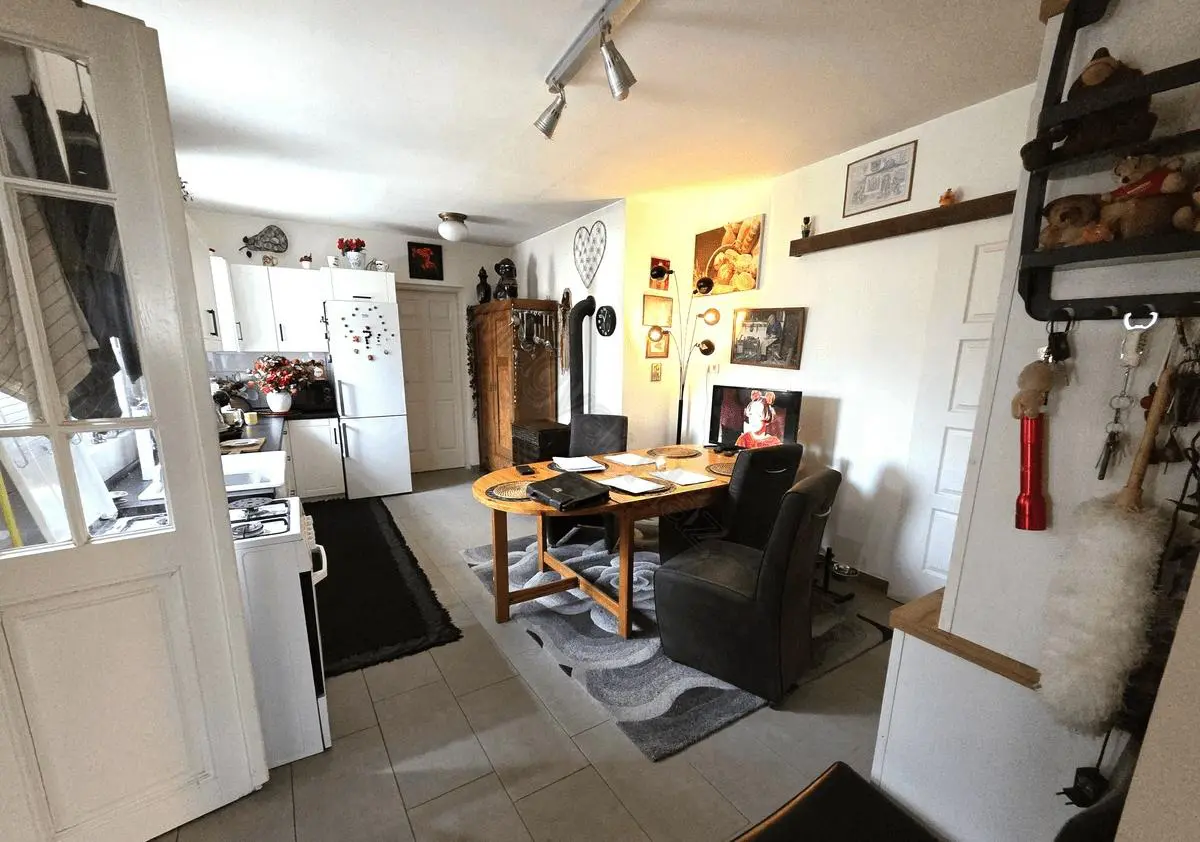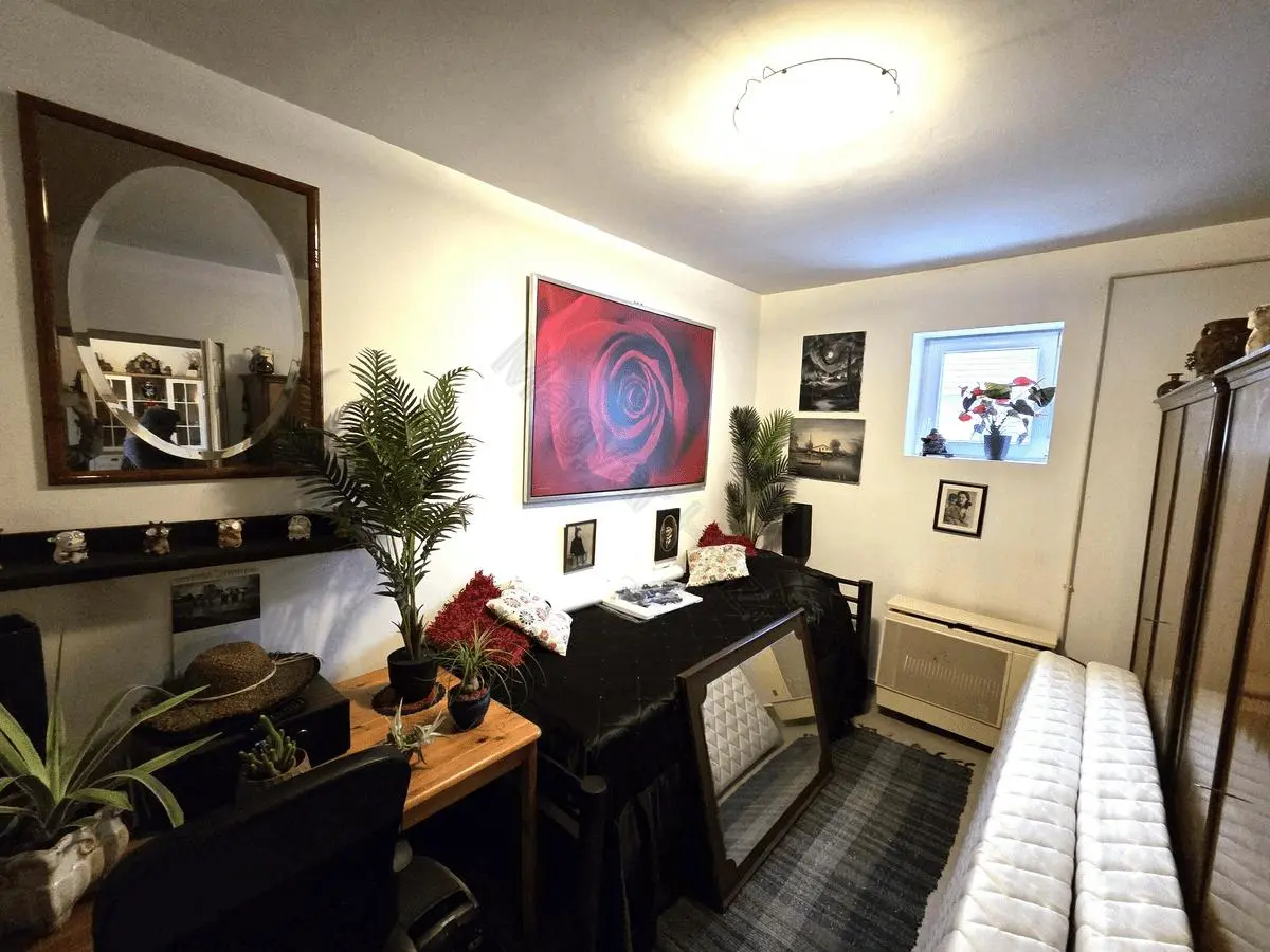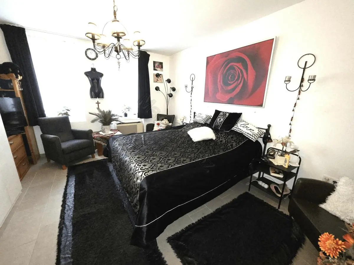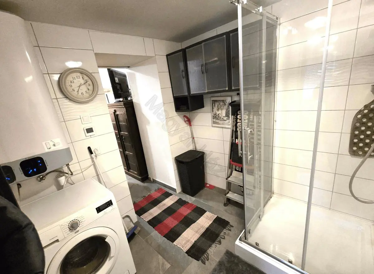 The guesthouse, measuring no less than 55 m², is a separate living unit and comprises a living room, kitchen, bathroom, and a bedroom upstairs, currently used as an office.