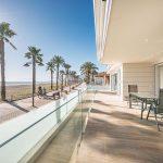 The external design of these residences is centered on making the most of the Mediterranean climate. Each home includes its own private terrace, a dedicated area for relaxation with views of the sea. Residents also have access to a shared solarium, which provides expansive views of the surroundings. The proximity to the beach, located a mere 700 meters away, allows for easy and frequent enjoyment of the sea.