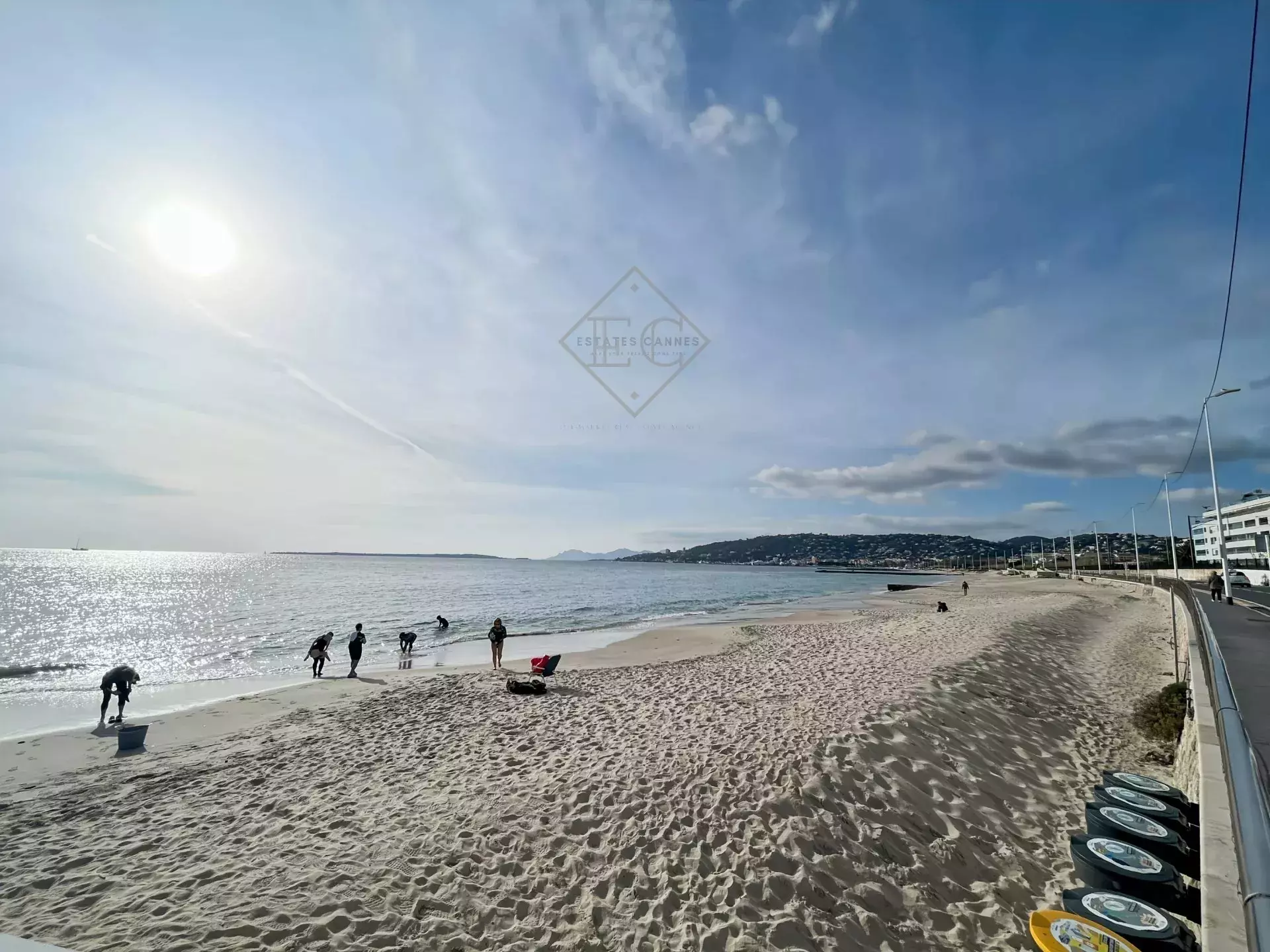 In Antibes, Juan-les-Pins, front line facing the sea, this rare property enjoys an exceptional location, overlooking a landscaped park with a lake, offering generous areas for walking, relaxation, and direct access to sandy beaches.