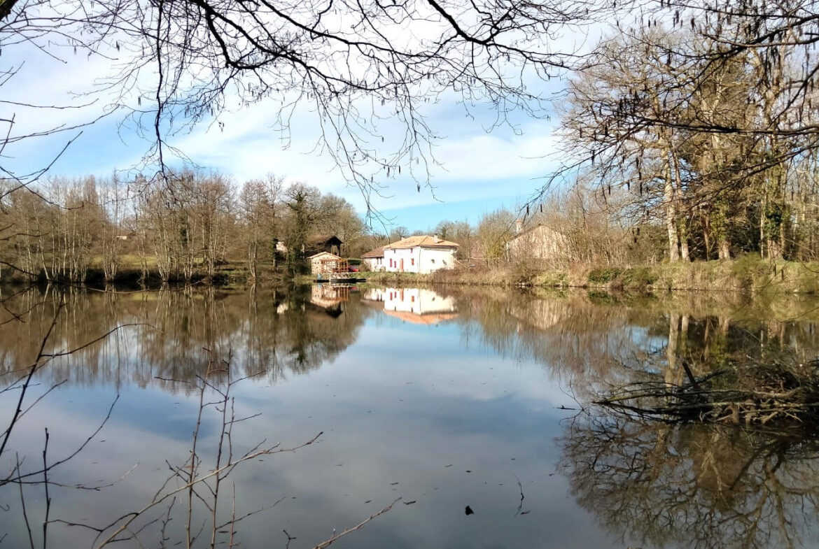 Situated on 3.8 hectares of landscaped grounds, this old stone mill has undergone a thoughtful restoration, transforming it into a functional dwelling. Nestled at the end of a quiet lane, this property boasts stunning views of a river-fed lake.