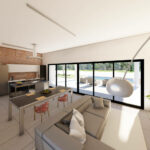 The main residence is structured over two levels. Upon entering the ground floor, you are greeted by expansive living spaces. A well-designed chef’s kitchen and a welcoming dining area provide functional and comfortable areas for daily activities. There are three double bedrooms located on this level, along with two bathrooms that serve the guests or family members.