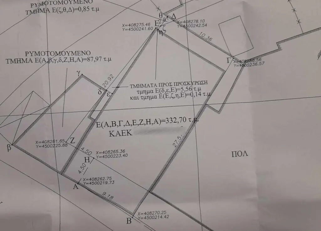 If you are looking for a potential investment in Thessaloniki, we have a land plot available for sale that measures 332 square meters. Located within the city plan, this property offers several advantages for future development.