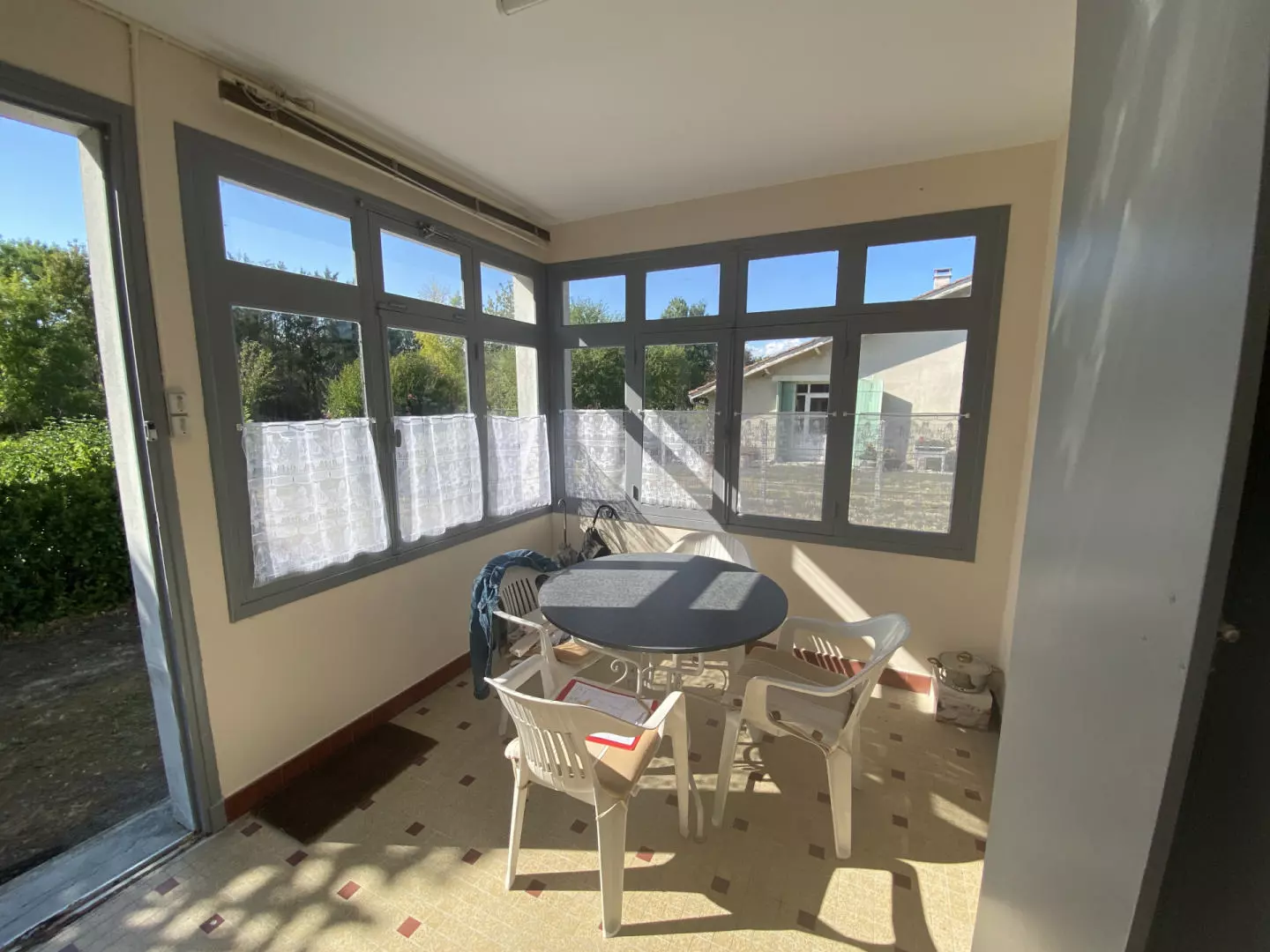 A significant highlight of the property is the large, flat garden, which includes fruit trees. This outdoor area can be an asset for gardening enthusiasts or for those looking for additional outdoor space. The property also comes with several outbuildings, including a barn, garage, and a wine cellar. A boiler room is also included, contributing to the functionality of the property.