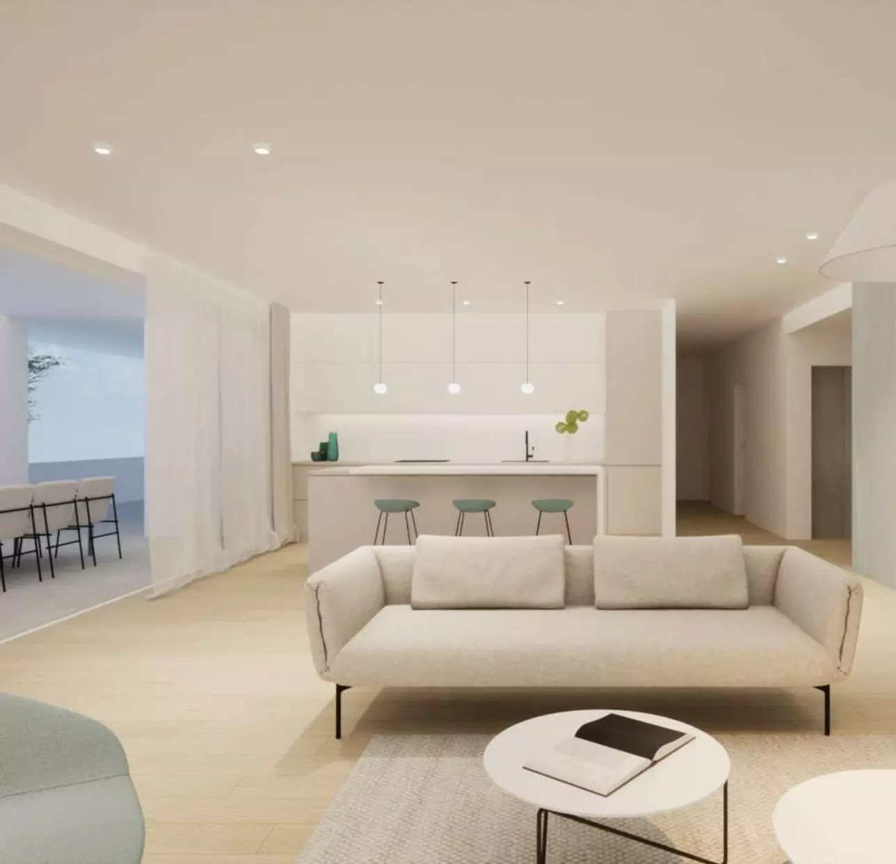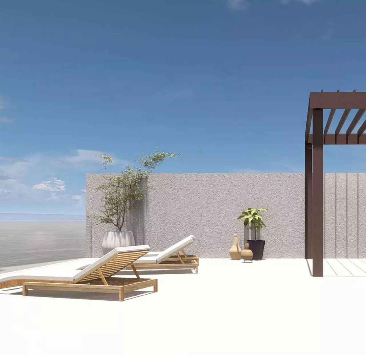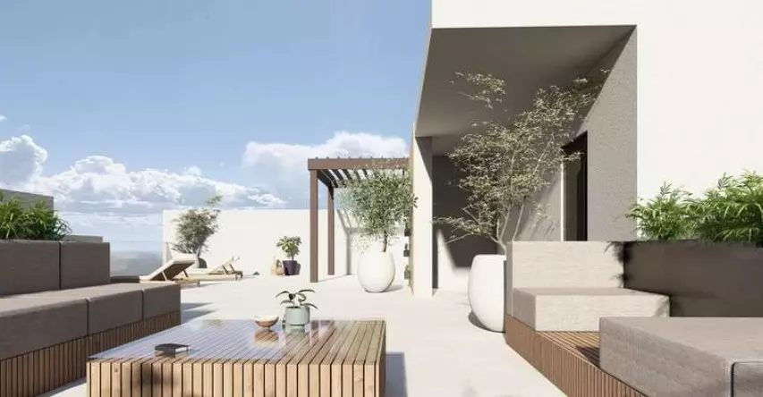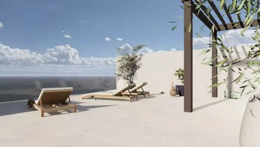 The heart of this home is its generous living room. It’s a space designed to be flooded with natural light, creating a bright and airy atmosphere. This main living area also opens directly onto a large terrace, extending your living space outdoors and offering a prime spot for enjoying the sea air. When it comes to sleeping arrangements, there are three bedrooms. Two of these bedrooms come with their own attached bathrooms, offering a degree of privacy and convenience. In addition to these, there’s another separate bathroom to serve the rest of the home. Practicality is also a consideration, with a dedicated storage room for keeping things tidy. This setup provides comfort and functionality for both residents and guests.