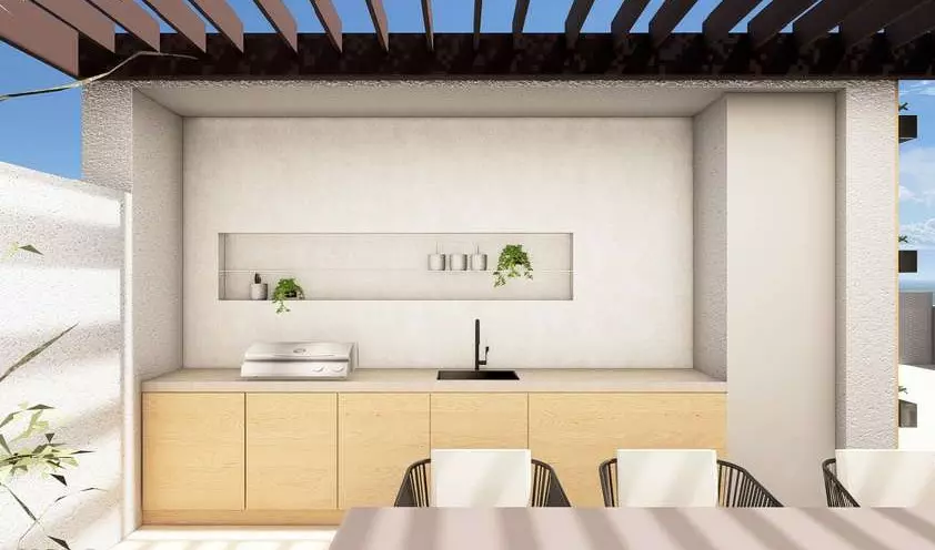 One of the standout features of this penthouse is the expansive rooftop terrace. This isn’t just any outdoor space; it’s a place designed for serious enjoyment and relaxation. From here, you can witness some of the most spectacular sunsets imaginable, painting the sky with color. To enhance the experience, the terrace is equipped with a summer kitchen, making it easy to prepare meals and drinks for gatherings without having to go back inside. And for the ultimate in relaxation, there’s a jacuzzi ready for you to unwind in. This rooftop area is ideal for entertaining friends and family or simply enjoying a quiet moment watching the world go by.