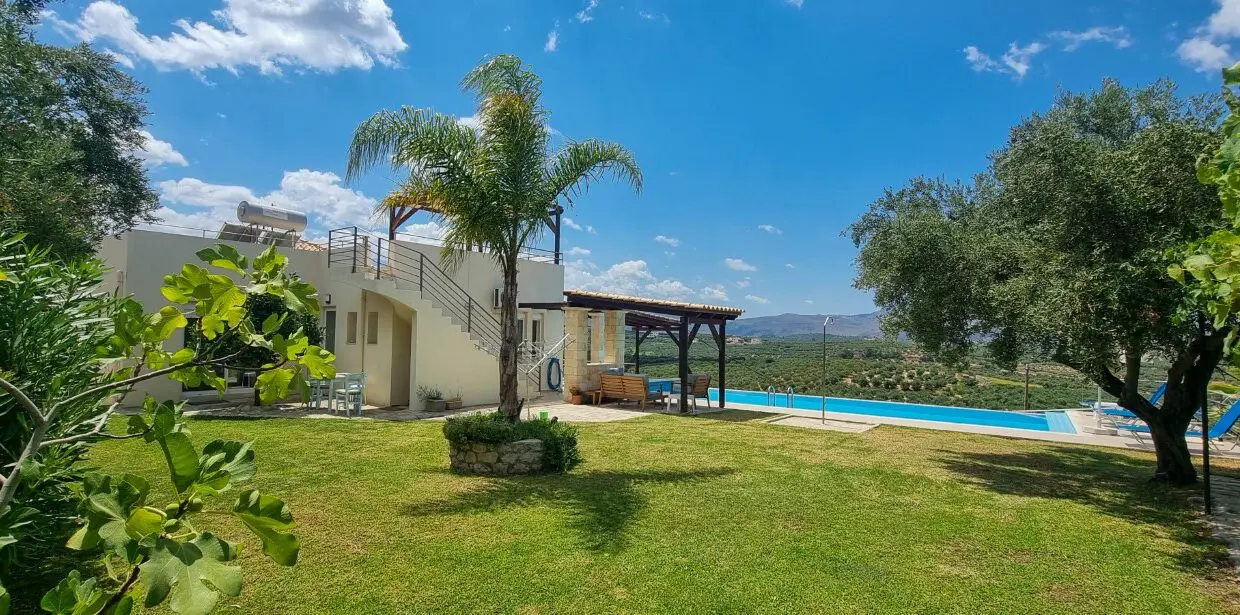 Are you ready to be whisked away into a dream of Cretan luxury? Nestled among the rolling hills of Kalives, this modern 280m2 villa beckons with its promise of serenity and splendor. Picture this: a majestic 4000m2 plot, where a generous 52 m2 infinity pool mirrors the endless blue of Souda Bay. Sounds too good to be true? Let’s dive a little deeper.