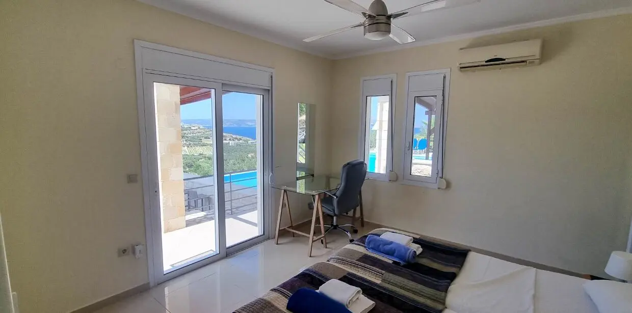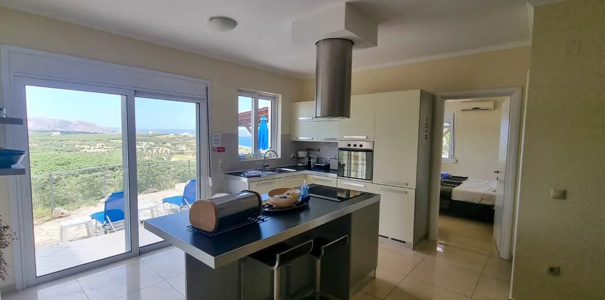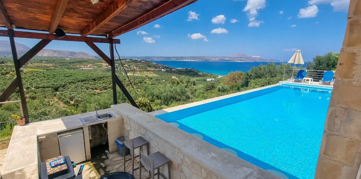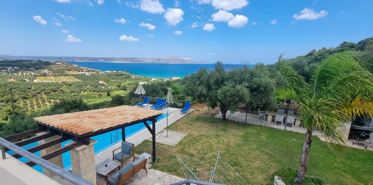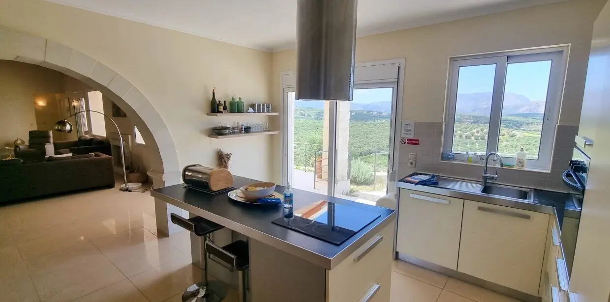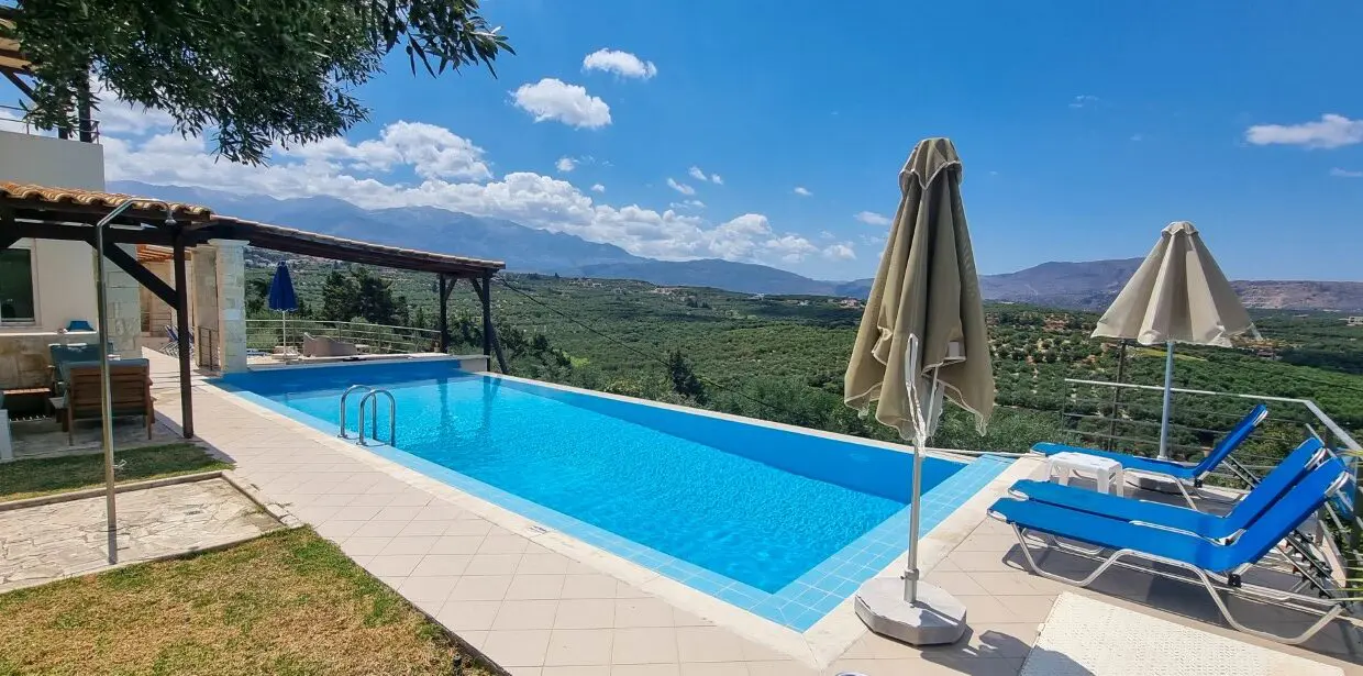 This is not just any home; it’s a sanctuary poised on the hillside, arguably the gem of the Chania region with 360-degree views that will leave you speechless. Imagine gazing out over the emerald embrace of olive groves, the quiet majesty of vineyards, and the snow-kissed tips of the White Mountains. Picture enjoying your own private slice of Crete, all while knowing that sandy beaches, charming waterfront tavernas, and the local zest of Almyrida and Kalives are just a stone’s throw away.