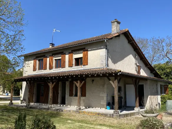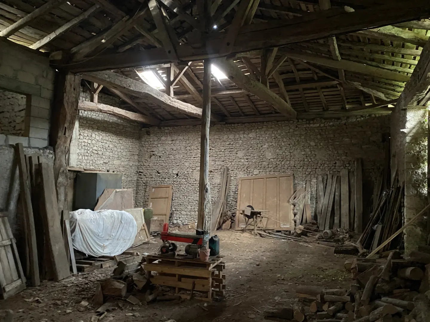 In the heart of the southern Charente countryside, this property and its large adjoining outbuildings are available for restoration by a new owner. There’s potential for development within the outbuildings, provided planning permission is obtained. The land is wooded, offering significant privacy.