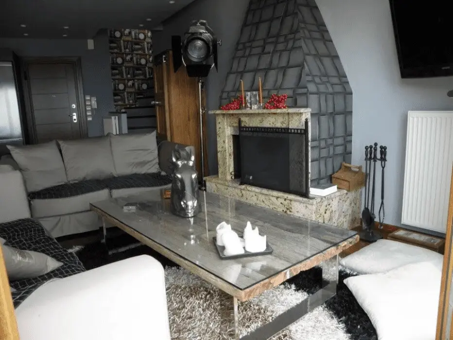 This property provides impressive views of the city, the sea, the mountains, and the surrounding forest from its windows. For climate control, it includes air conditioning and heating systems, ensuring comfort throughout the year. A fireplace adds another layer of heating capability.