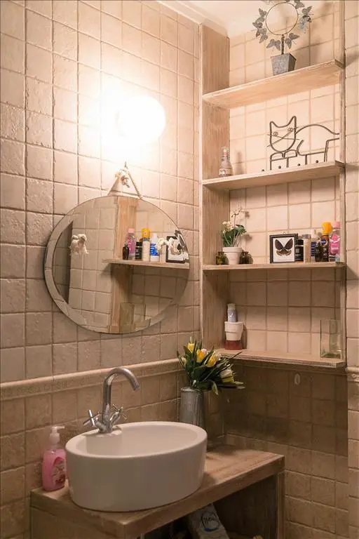 Moving to the ground floor, you will find another bedroom, a living room combined with a kitchen, and a bathroom. This arrangement supports a functional living space, making everyday activities seamless.