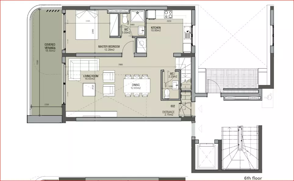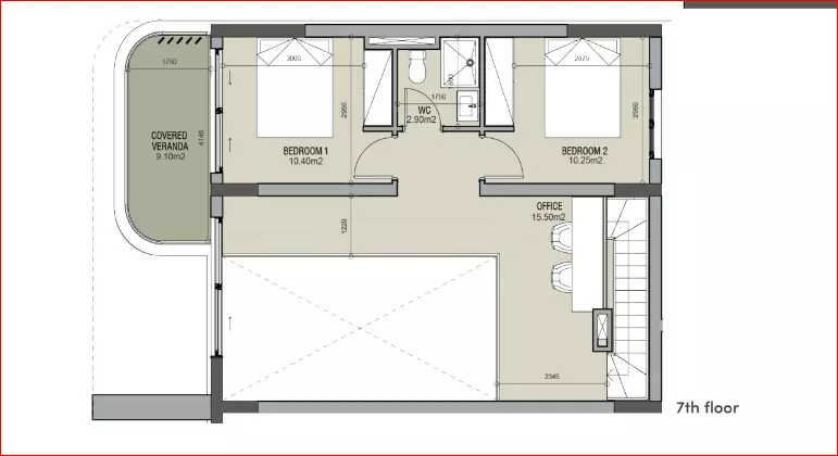 Let’s break down the layout. On the 6th floor, you’ll find a cozy bedroom, a welcoming living room, a modern kitchen, one shower WC, and an additional WC. It’s a perfect space for entertaining guests or simply relaxing in your own private retreat. As you ascend to the 7th floor, you’ll discover two more well-appointed bedrooms, alongside another living room and a convenient shower WC. This layout ensures you have ample room for family, friends, or even a home office.