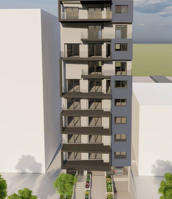 The 8th floor encompasses one bedroom, a living room that connects seamlessly with the kitchen, and a shower WC. The layout is practical, ensuring a functional flow between areas.