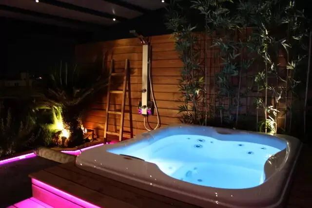 Moving to the 4th floor, there’s one bedroom, another living room, a separate kitchen, a shower WC, a dedicated gym area, and a hot tub. This space is designed for both leisure and functionality, catering to different lifestyle needs.