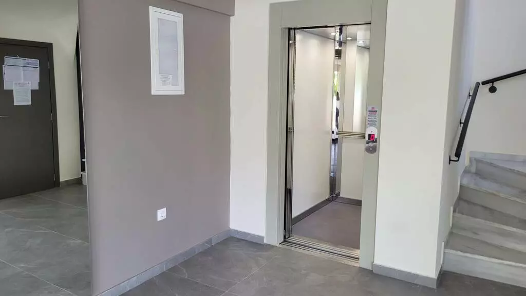 This property is equipped with solar panels for water heating, making it energy-efficient. An installed fireplace contributes to heating during the cooler months. The building itself includes an elevator, ensuring easy access to the maisonette.