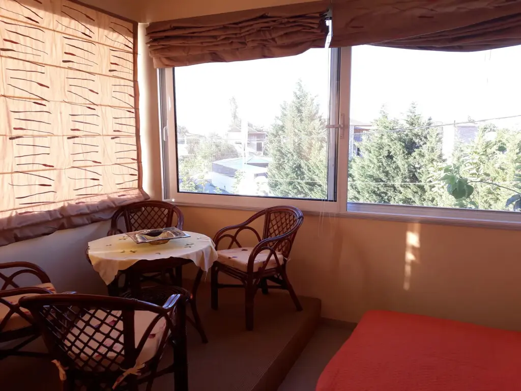 The windows of the maisonette provide a view of the mountain. The property is equipped with several features for comfort and convenience, including a fireplace, air conditioning, awnings, and a heating system. An outdoor barbecue area is also available. The furniture currently in the maisonette will remain with the property upon sale. An alarm system is installed for security.