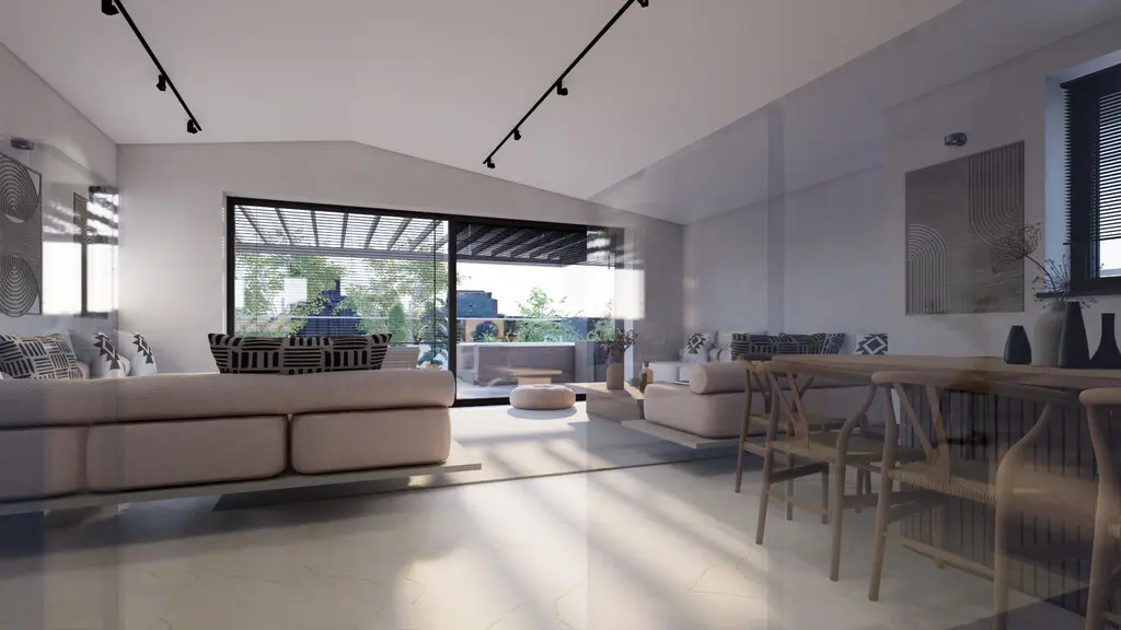 For sale under construction maisonette of 132 sq.meters in Athens. The maisonette has 2 levels. 1st floor consists of 2 bedrooms, one shower WC. Loft consists of living room with kitchen, one WC.