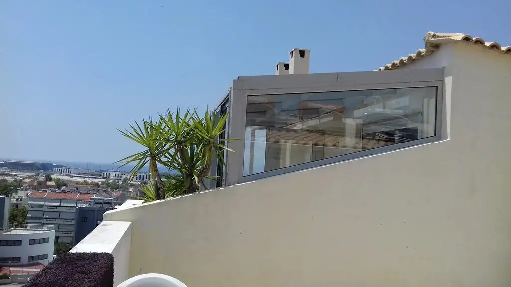 This property includes several features that add value. From the windows, residents can enjoy expansive views of the city and the sea. The presence of solar panels aids in water heating, which can be beneficial for energy efficiency.