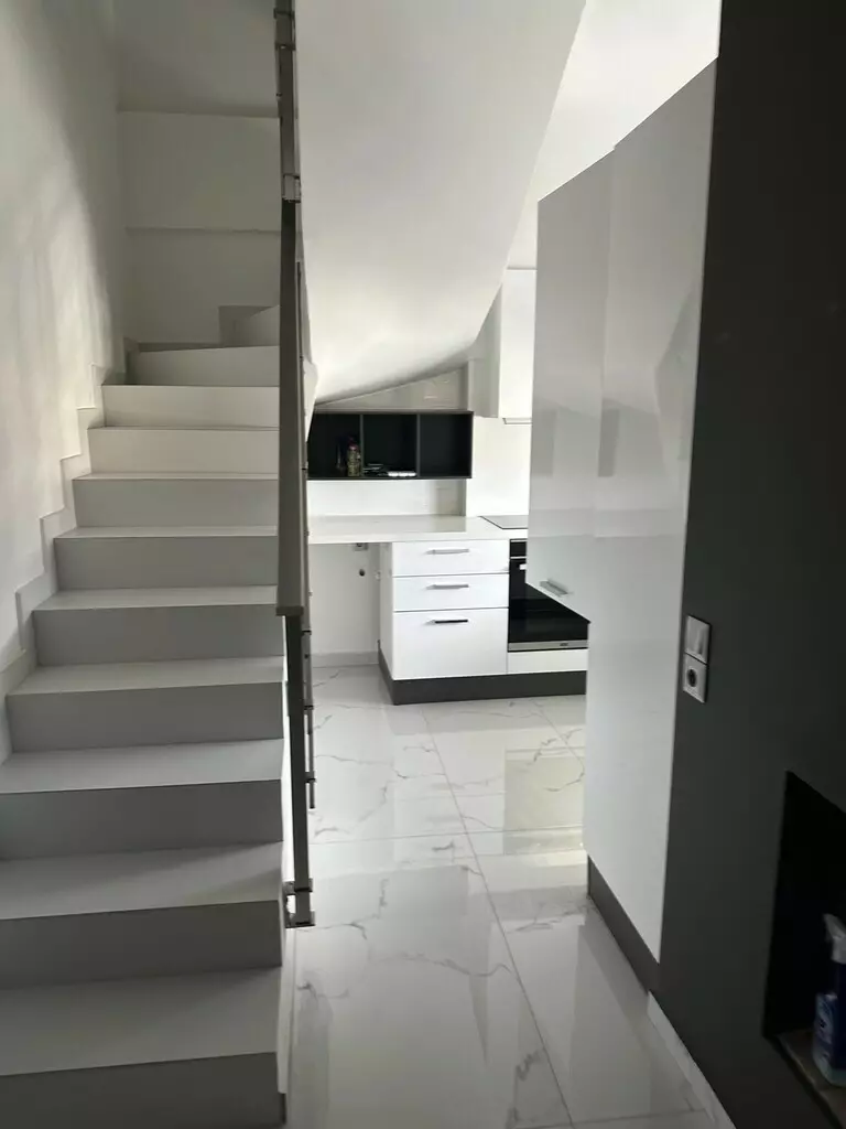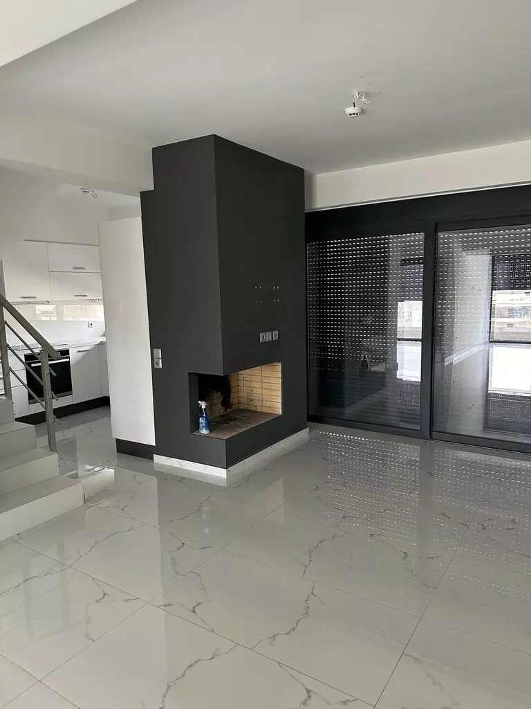 This maisonette is equipped with several practical features. Solar panels have been installed for efficient water heating, enhancing energy efficiency. The presence of a fireplace adds to the heating options within the home, alongside air conditioning for climate control throughout the year. The building is equipped with an elevator, making accessibility convenient. As an added bonus, this property includes a garage for secure vehicle parking.