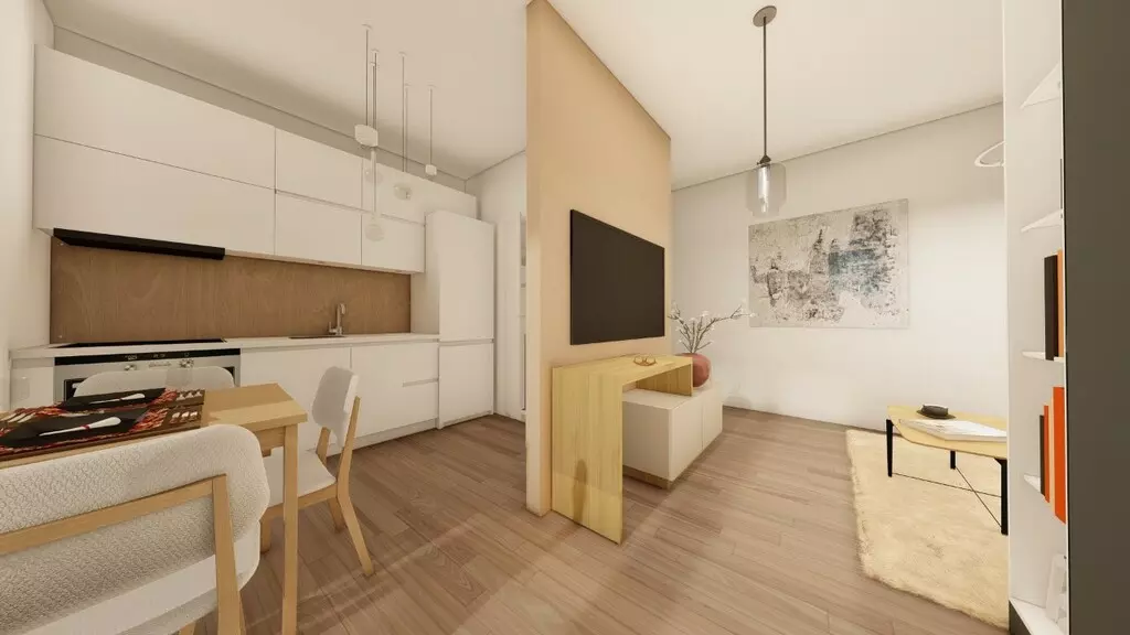 The ground floor features one bedroom and a shower WC, providing a convenient living space. Moving up to the first floor, you will find an open-plan living room that connects to the kitchen, allowing for easy interaction among household members or guests.