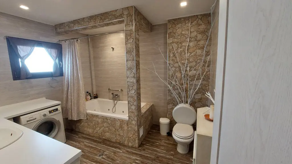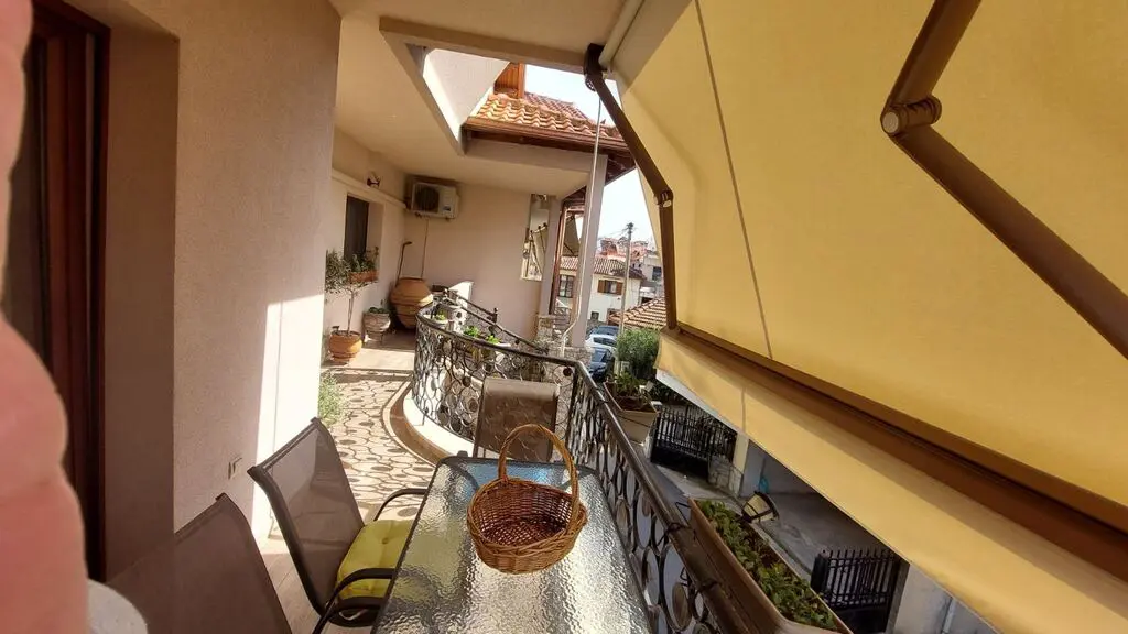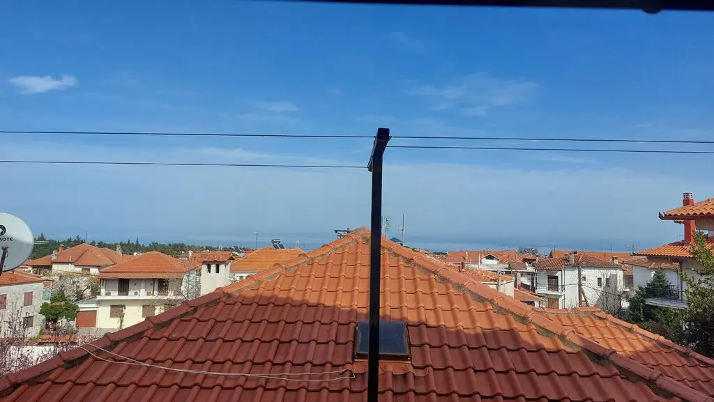This maisonette provides views of the city, the sea, and the mountains from its windows, making it a noteworthy aspect. There are several features included in the property, such as solar panels for water heating, a fireplace, and air conditioning. The installation of awnings and a heating system contributes to the property’s functionality.