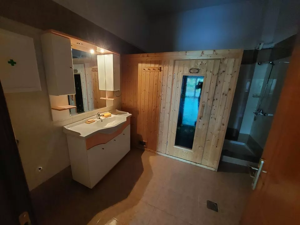 The basement primarily consists of a storeroom, offering additional storage options. Moving to the semi-basement, you will find one bedroom, a living room combined with a kitchen, a WC, an additional storeroom, and a sauna, which adds a unique wellness feature to the residence.