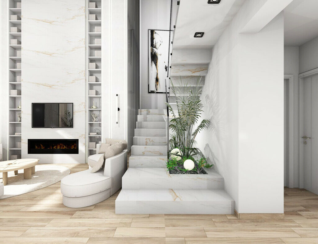 The second floor of the maisonette features a well-thought-out space that includes one bedroom, a living room connected to a kitchen, and a shower WC. Additionally, there is an office area that provides flexibility for work or study. Moving up to the third floor, you will find two more bedrooms, each with its own shower WC, adding privacy and convenience for residents or guests.