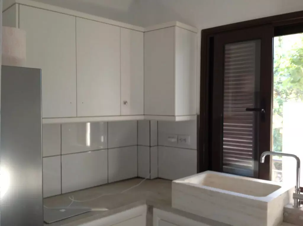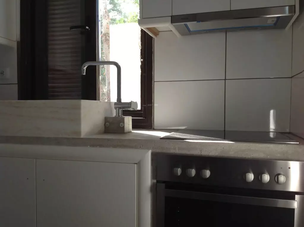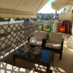 This maisonette includes solar panels for water heating, contributing to energy efficiency. Air conditioning is installed to maintain a comfortable indoor climate during warm months. Additional features include awnings for shade and heating to ensure the property remains functional year-round.