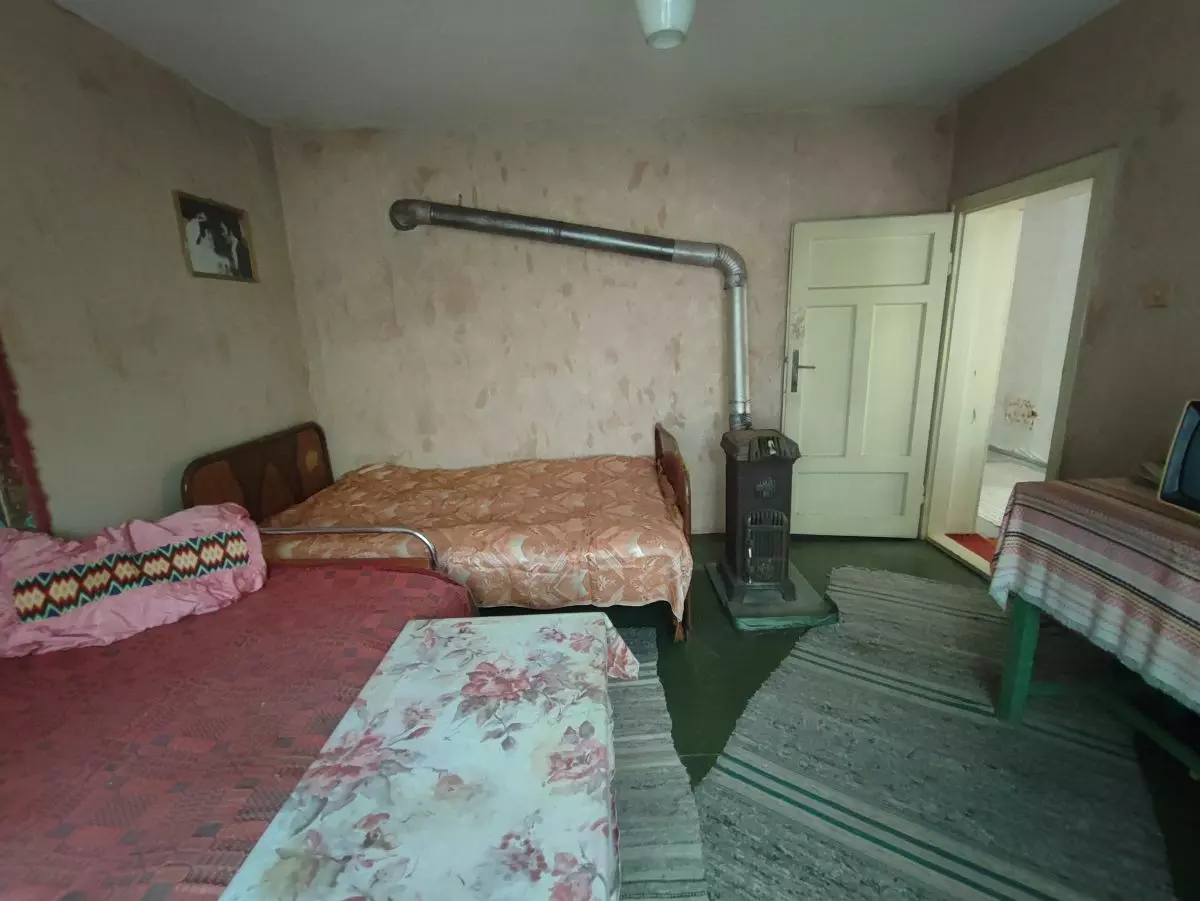 The house offers 100 sq.m. of comfortable living space spread over two floors. The ground floor features a bedroom, a kitchen, and a bathroom. There are three more bedrooms on the upper floor. In an attached building, you will find a spacious summer kitchen, suitable for a winter garden. There is not an indoor toilet. The yard is divided into two sections. It includes a garage with an additional room, approximately 40 sq.m., as well as several farm outbuildings.