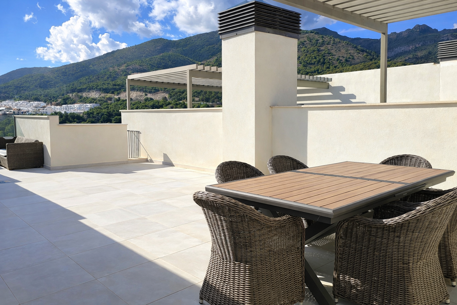 From the moment you enter, the property impresses with its sense of light, openness, and refined contemporary design. The layout has been thoughtfully conceived to maximise both comfort and flow, seamlessly connecting the interior living spaces with the expansive outdoor areas. Thanks to its privileged south-to-west orientation, the penthouse enjoys sunlight throughout the day, from morning through to sunset, enhancing both the ambiance and the panoramic views of the Mediterranean Sea and surrounding mountains.