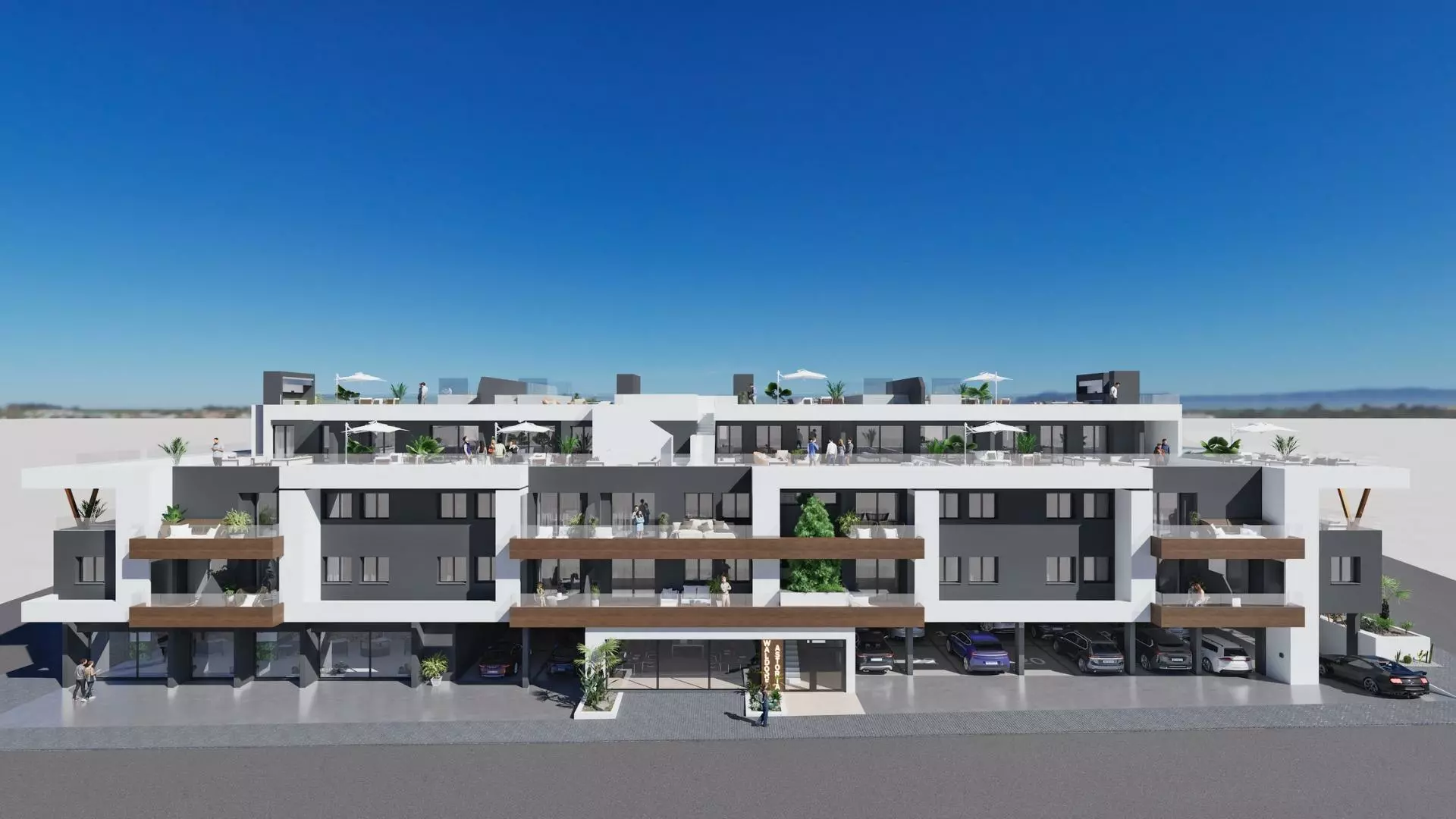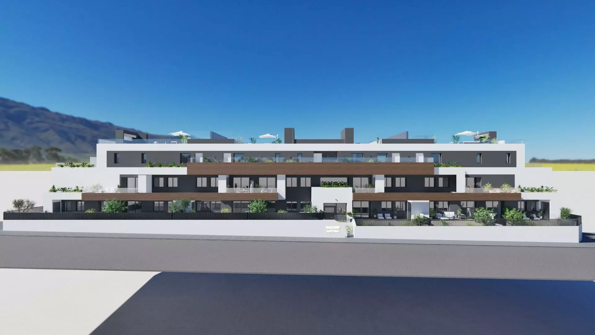 Located in the center of Benijofar, this new build residential project features communal rooftop pools for residents. This village is recognized for its vibrant community and provides a range of modern living options.