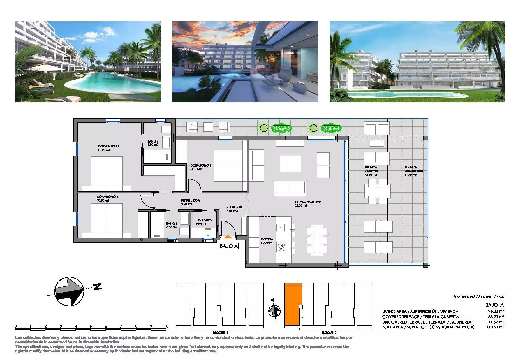 The complex offers flexible options when it comes to property types. You can select from ground floor apartments that come with a private garden, mid-floor apartments that have a terrace, or penthouses featuring a private solarium. Each unit consists of either 2 or 3 bedrooms, along with 2 bathrooms. This diversity ensures that there’s something to suit various lifestyles and preferences.