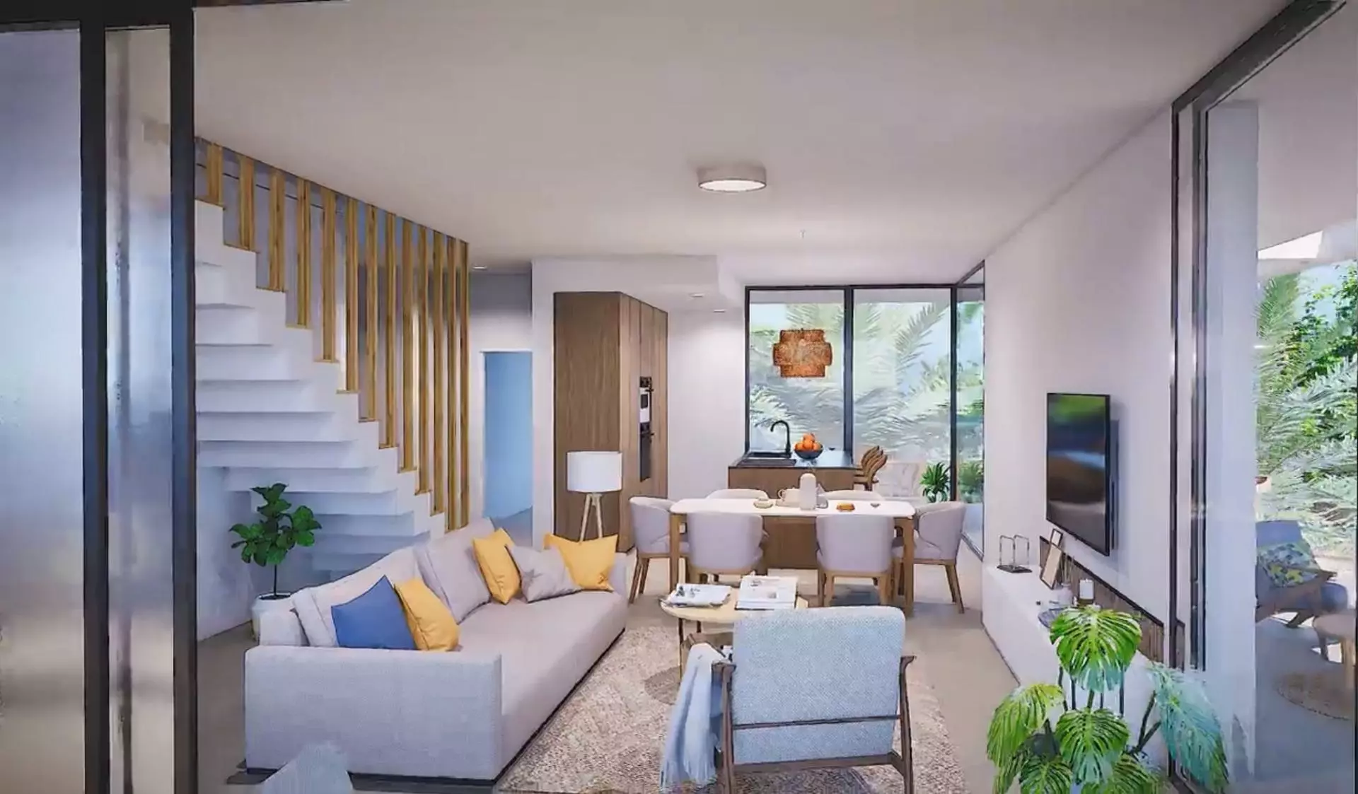 Each apartment in the complex is designed with an open-plan living area. This layout integrates the kitchen, dining area, and lounge into one spacious environment, which provides easy access to the terrace. The master bedroom is equipped with a private bathroom, enhancing convenience. Built with quality finishes, these homes include fitted wardrobes, pre-installation of ducted air conditioning, and a storage room.