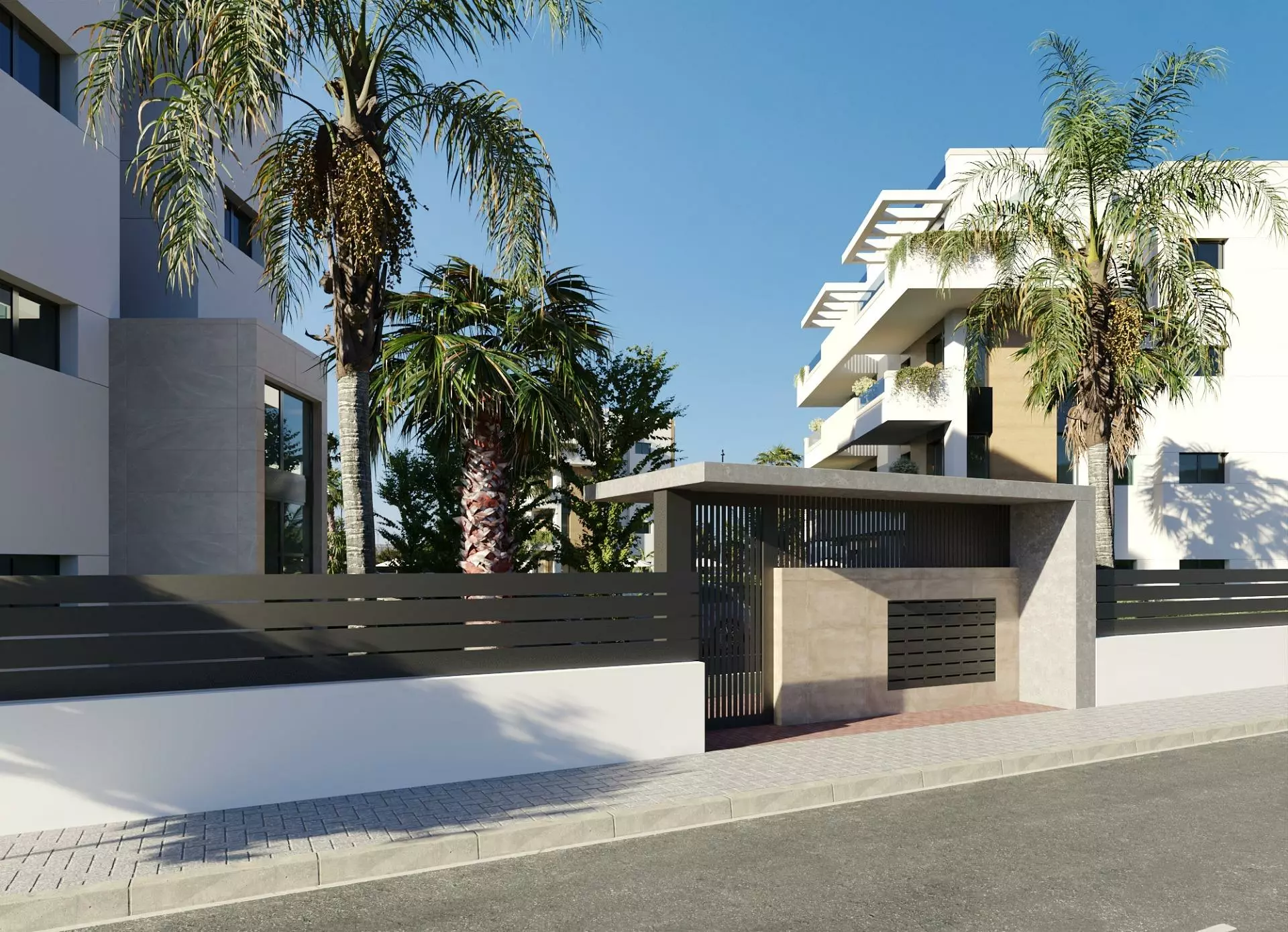 This project includes five separate buildings that house a total of 40 fully furnished apartments. These units are arranged over four levels, featuring two apartments on each floor. Each apartment includes 2 bedrooms and 2 bathrooms, focusing on functional layout and design. Buyers have options, including ground floor units complete with private gardens, middle floor apartments that come with large terraces, or penthouses that boast private solariums and expansive views.
