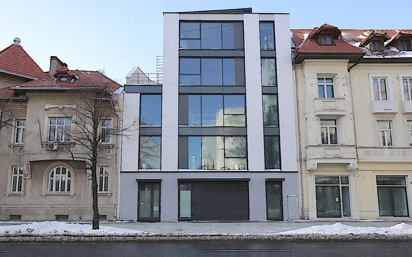 On the ground floor, the open space invites interaction and display – perfect for showrooms, premium stores, jewelry or elegant receptions. The upper floors can easily become representative offices, headquarters, creative spaces, conference rooms or even an urban restaurant concept, in a bright and airy setting. The basement completes the functionality of the building, being ideal for storage, archive, technical spaces, etc.