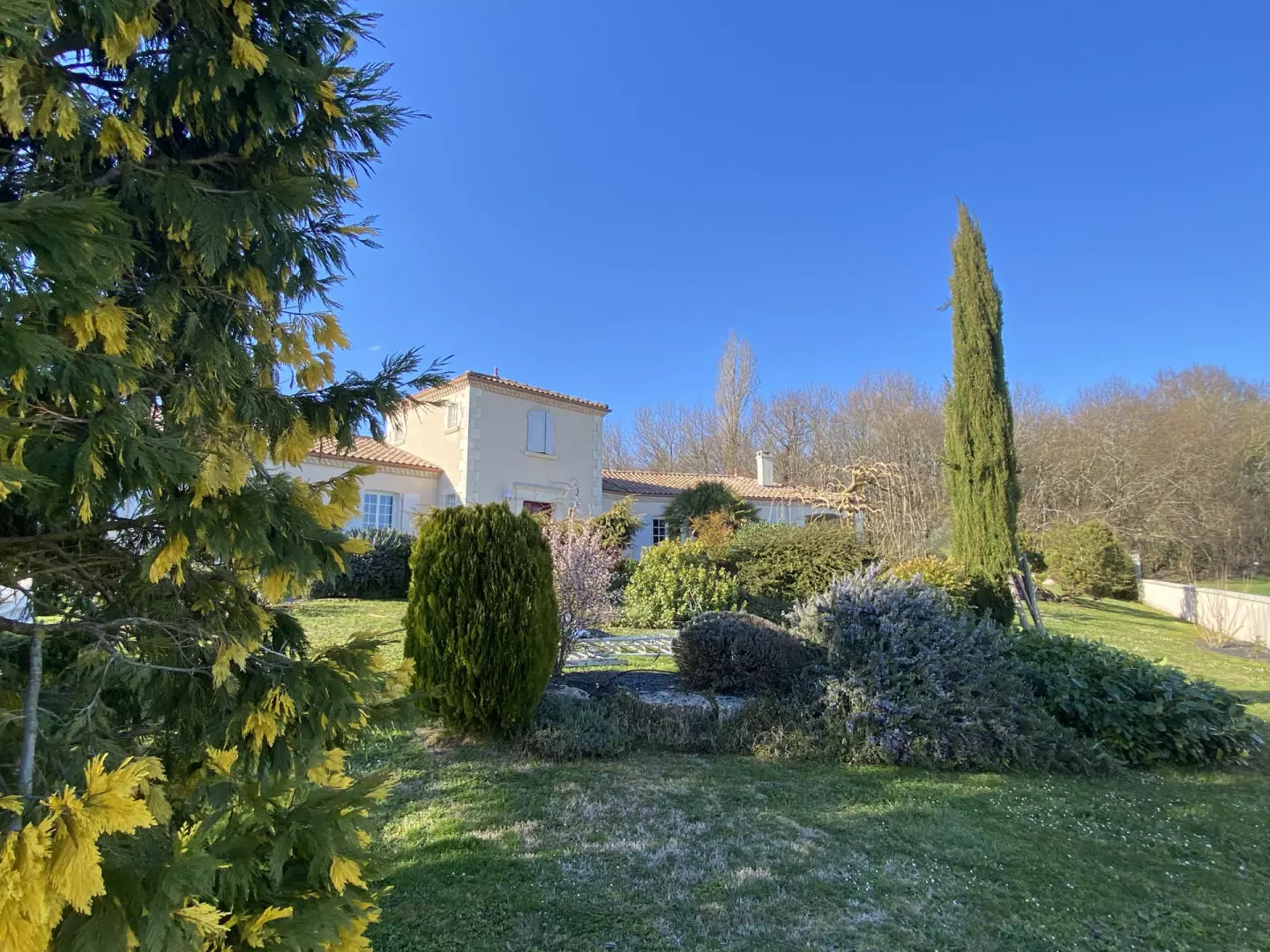 Located just a short distance from Barbezieux-Saint-Hilaire, this countryside property offers convenient access while maintaining a serene environment. The estate is approached through gates and a private driveway, ensuring privacy and security for residents.