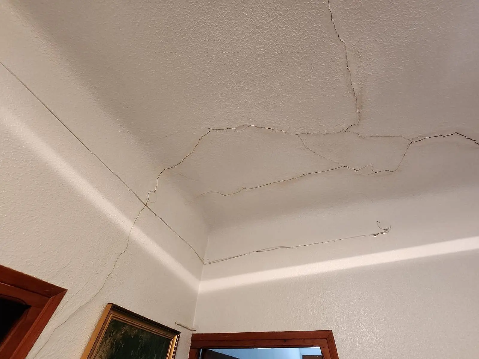 Before you get too excited, let’s discuss the condition of the property. To put it simply, it is in a rough state. Many think it might be more sensible to consider a complete rebuild. We’ve shared photos of some areas that show just how much work is involved. From cracks in the ceilings and walls to unstable floors, it’s clear this house requires significant structural repairs.