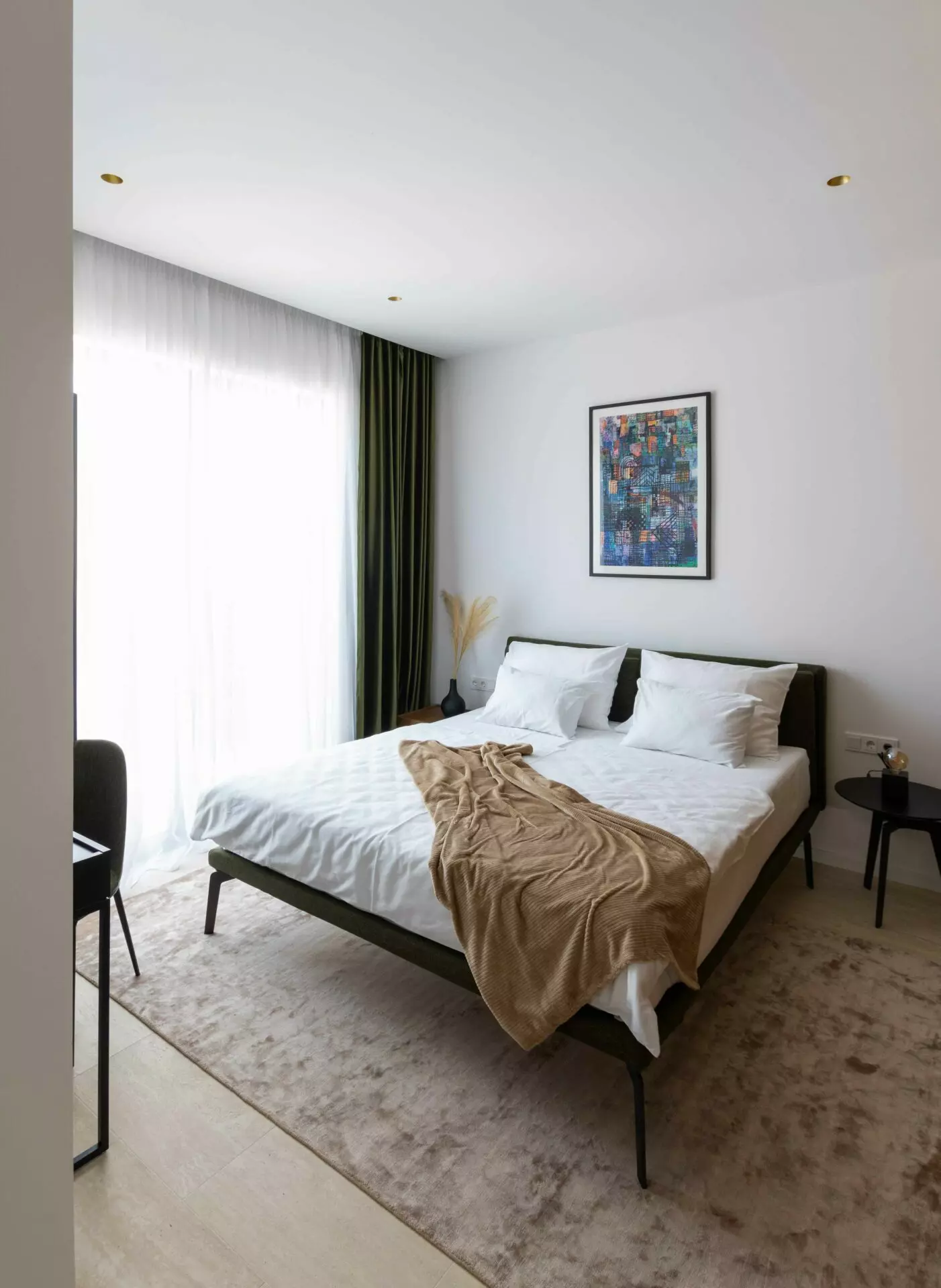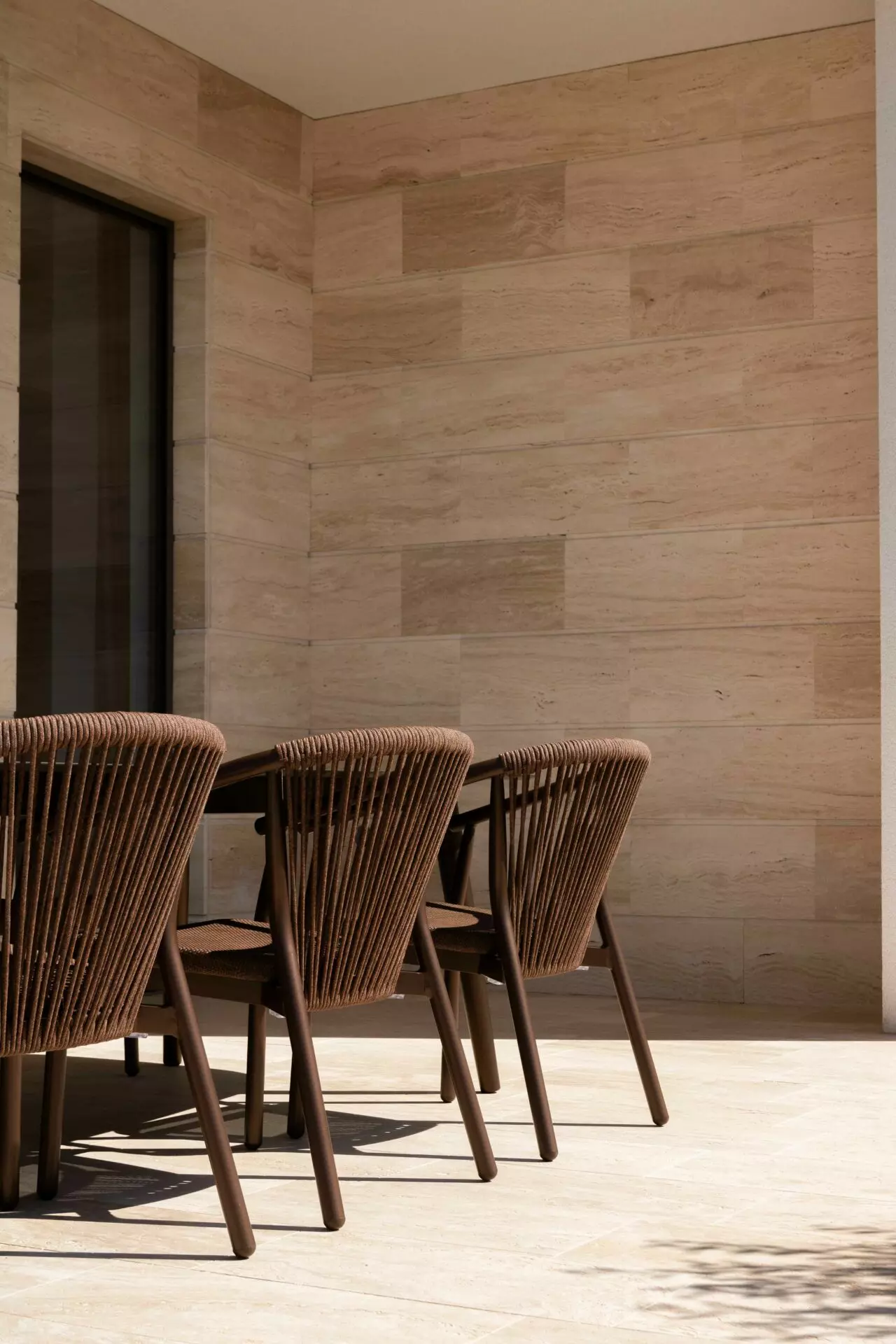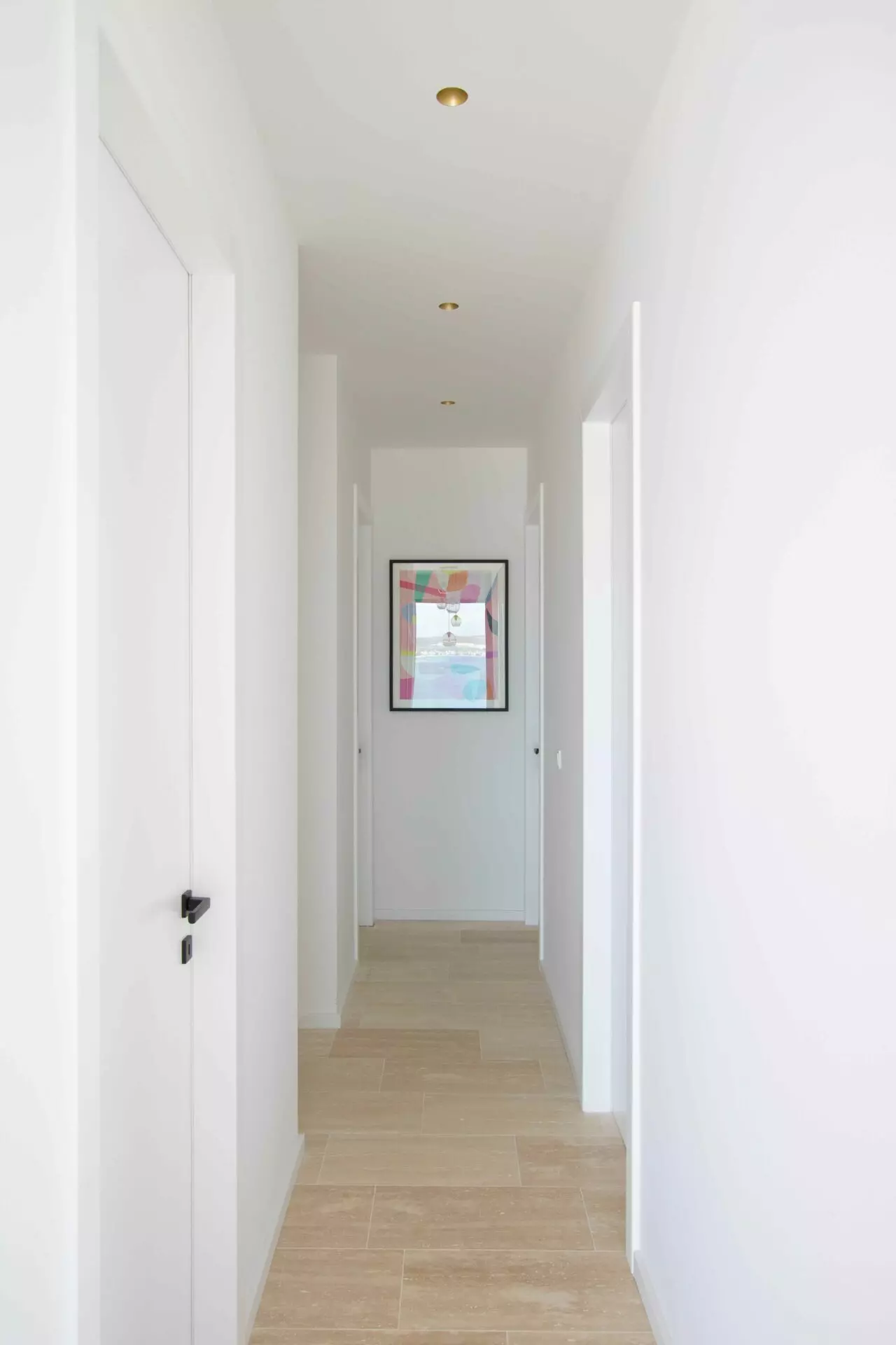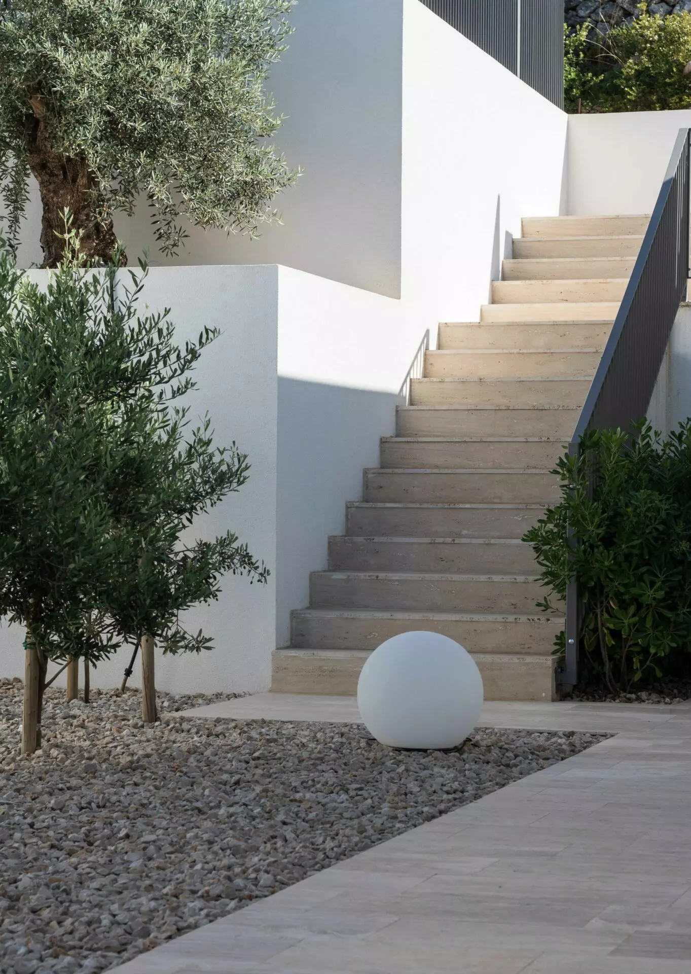 The interior is finished to the highest standards – cement plastered walls, smooth surfaces, and travertine stone floors that seamlessly match the exterior design. Top-quality aluminum joinery by Cortizo (Cor Vision Plus model) enhances the luxurious and airy feel of the space.