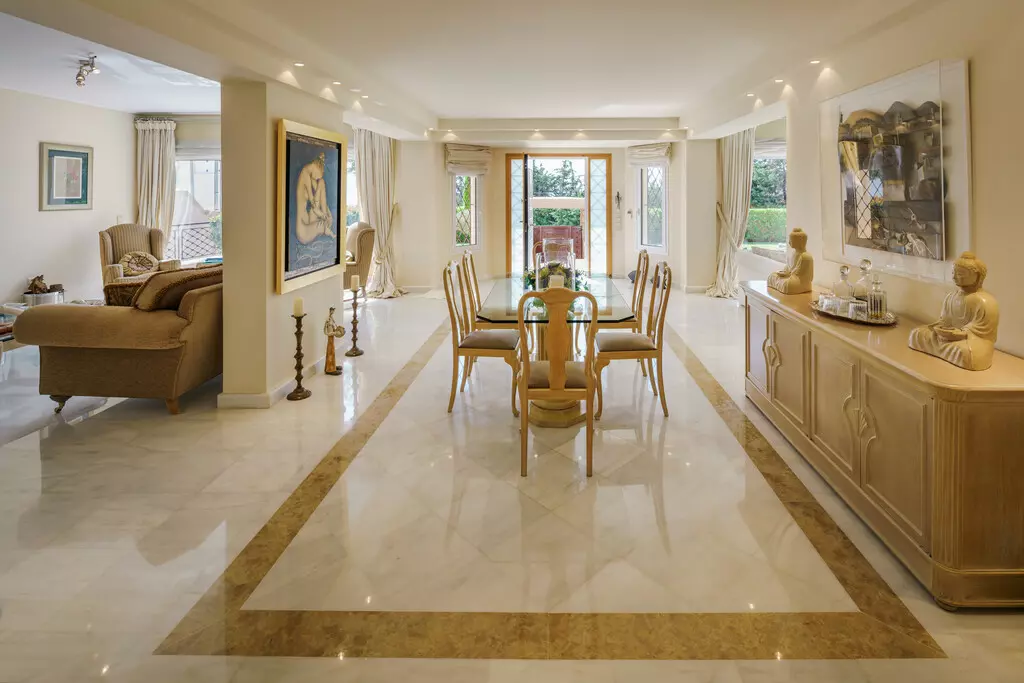 Moving to the first floor, the villa contains three bedrooms, a bathroom, another shower WC, and a dressing room, making it suitable for a family or guests. The second floor adds two more bedrooms, another shower WC, and a dressing room, affording flexibility in use.
