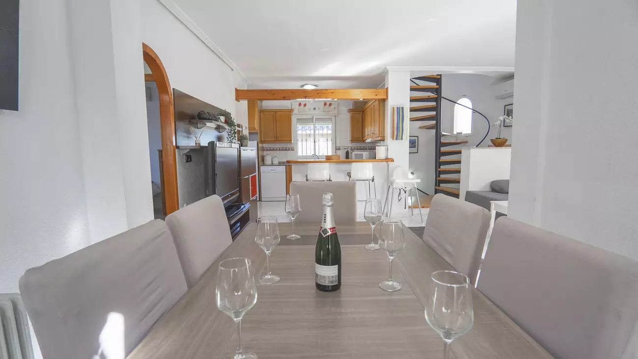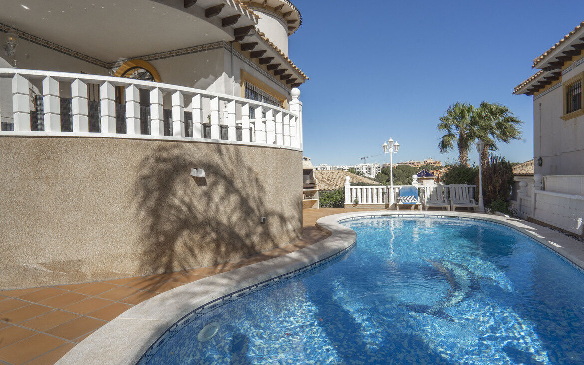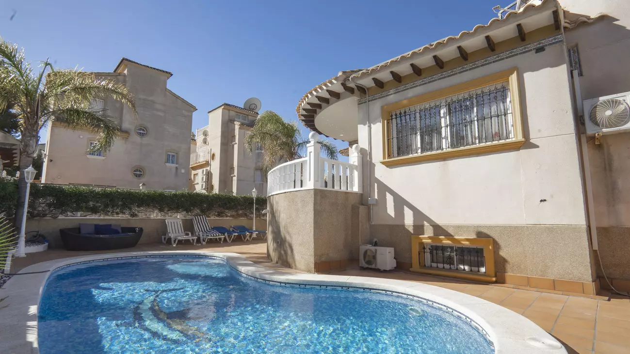 This four-bedroom property is situated in Villamartin, offering a private pool and a unique view of the 5th tee of the local golf course. Designed to accommodate up to eight guests, it is suitable for families or groups seeking a vacation destination where they can stay together yet have individual space.