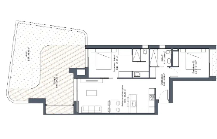 The new residential complex offers apartments featuring two bedrooms and two bathrooms. Each unit includes a living room, kitchen, and terrace. The layout promotes functionality while maximizing the use of space. Ground floor apartments have access to a terrace, whereas top floor apartments come equipped with a private solarium. These outdoor spaces offer residents opportunities to enjoy the climate while taking in the surroundings.
