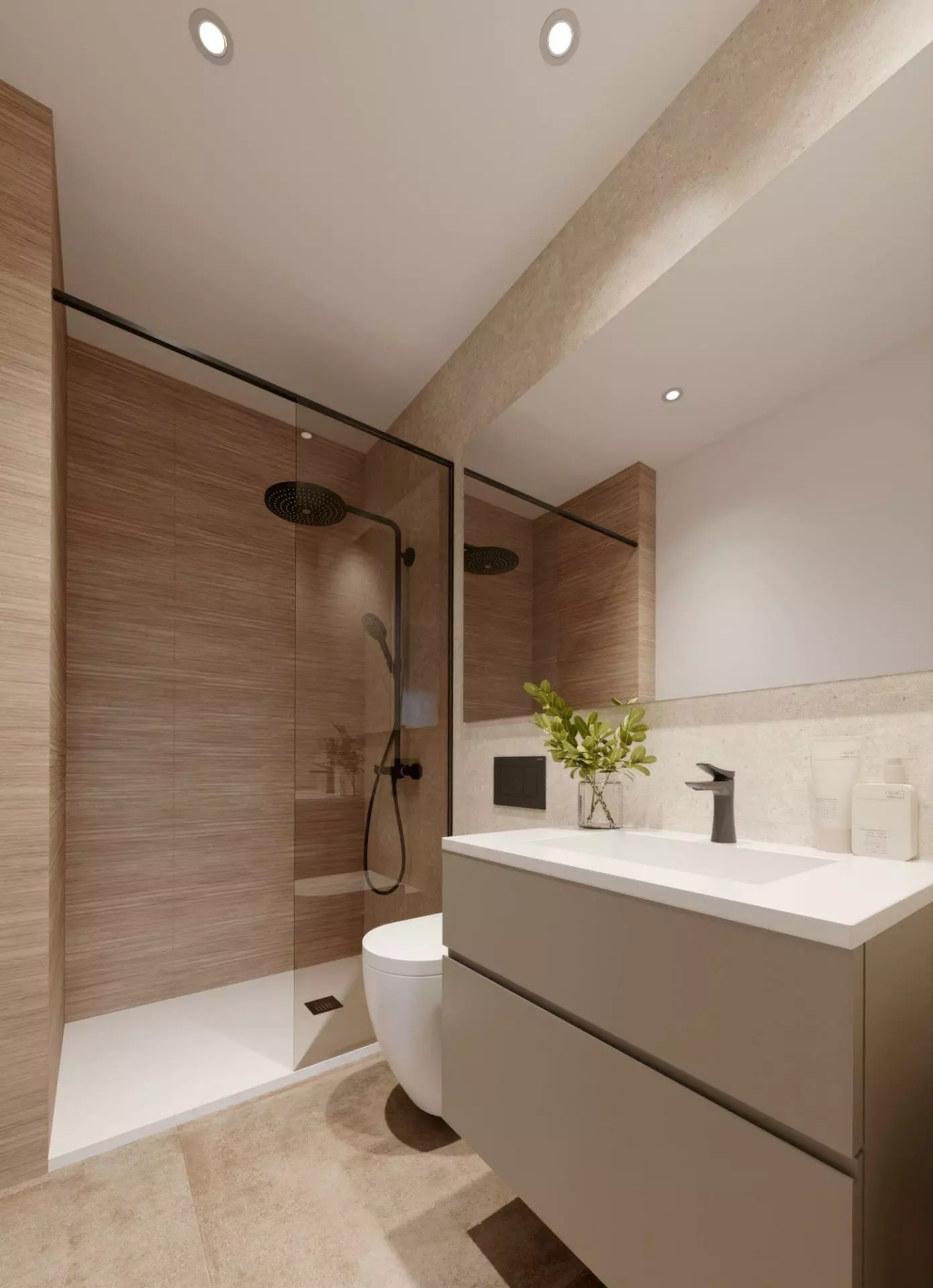 This project consists of five independent buildings housing a total of 40 fully furnished apartments, spread across four floors. Each floor accommodates two units, and the layout includes 2 bedrooms and 2 bathrooms designed for efficient space use. Buyers have options: ground floor units offer private gardens, middle floor apartments feature large terraces, and penthouses provide private solariums with extensive views.