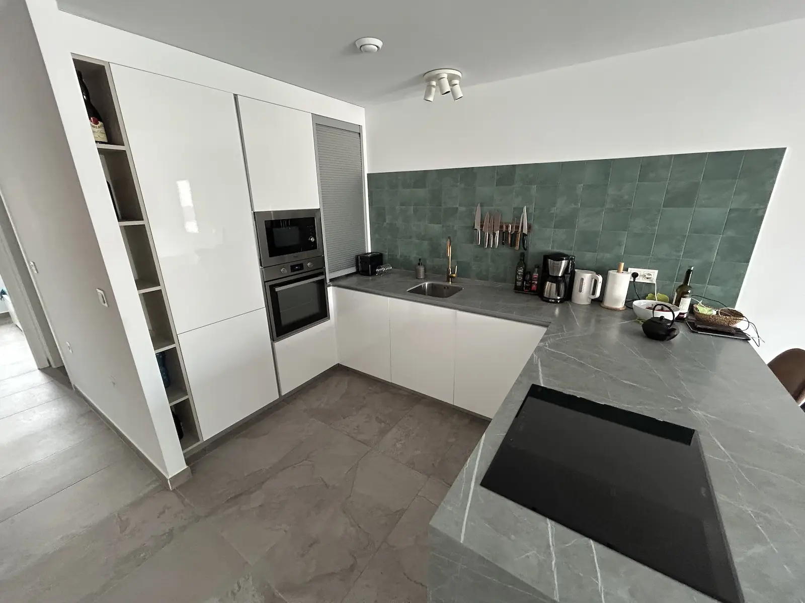 The living area serves as the central hub of the apartment. It features an open layout that seamlessly connects to the kitchen, making it suitable for both relaxation and casual entertaining. The kitchen is equipped with modern appliances and offers sufficient counter space for meal preparation.