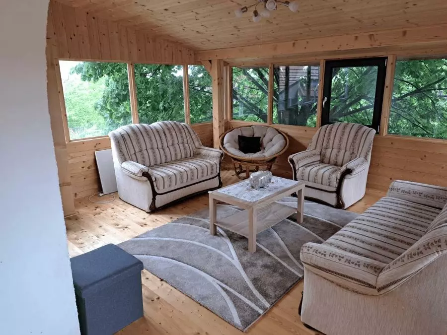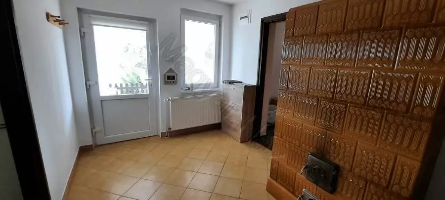 In the rear garden, there is a detached house measuring 60 m². This structure features a hallway, a living room, a kitchen, and a bathroom, providing additional living options or flexibility for guests.
