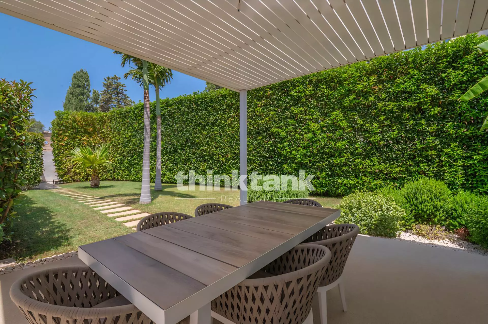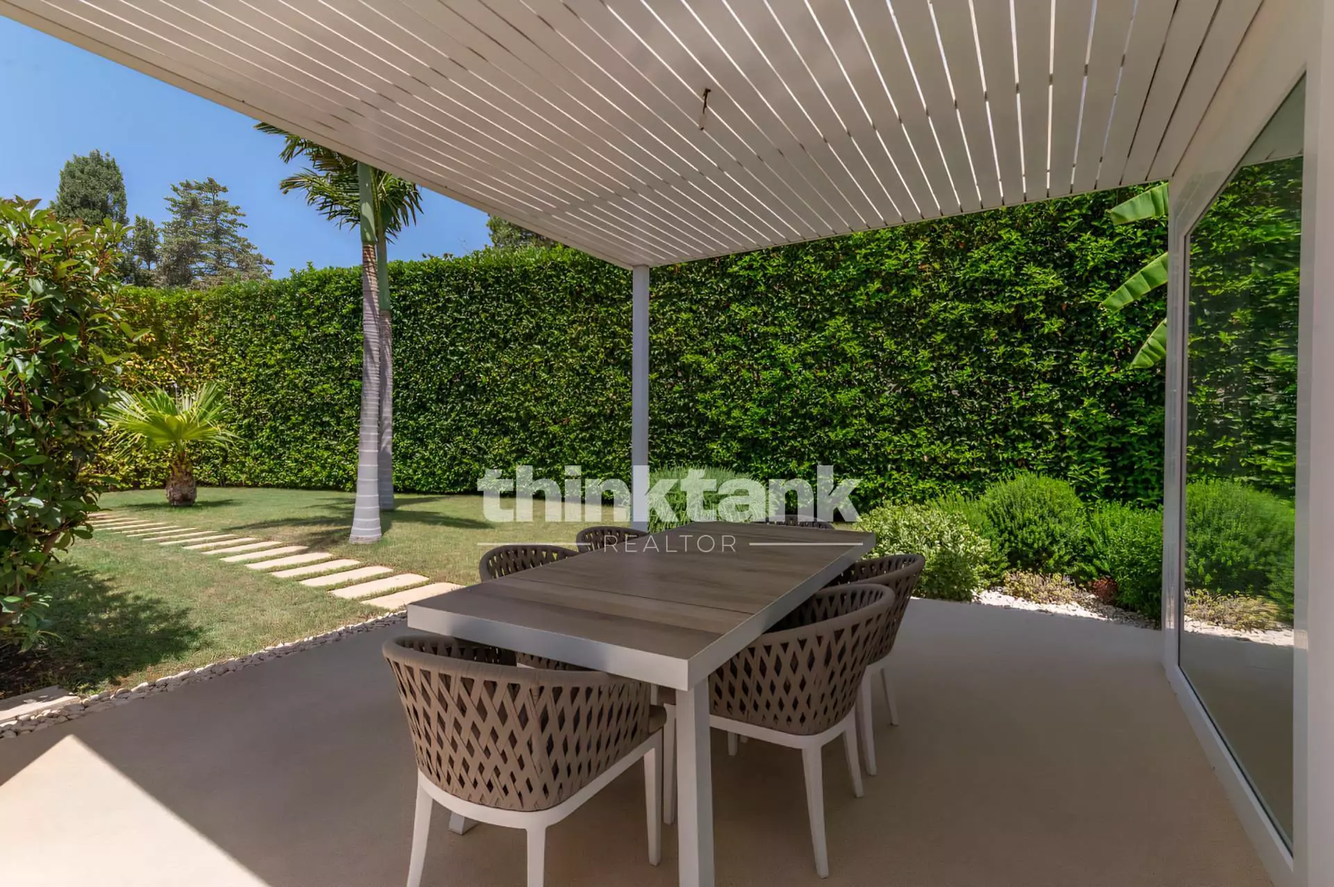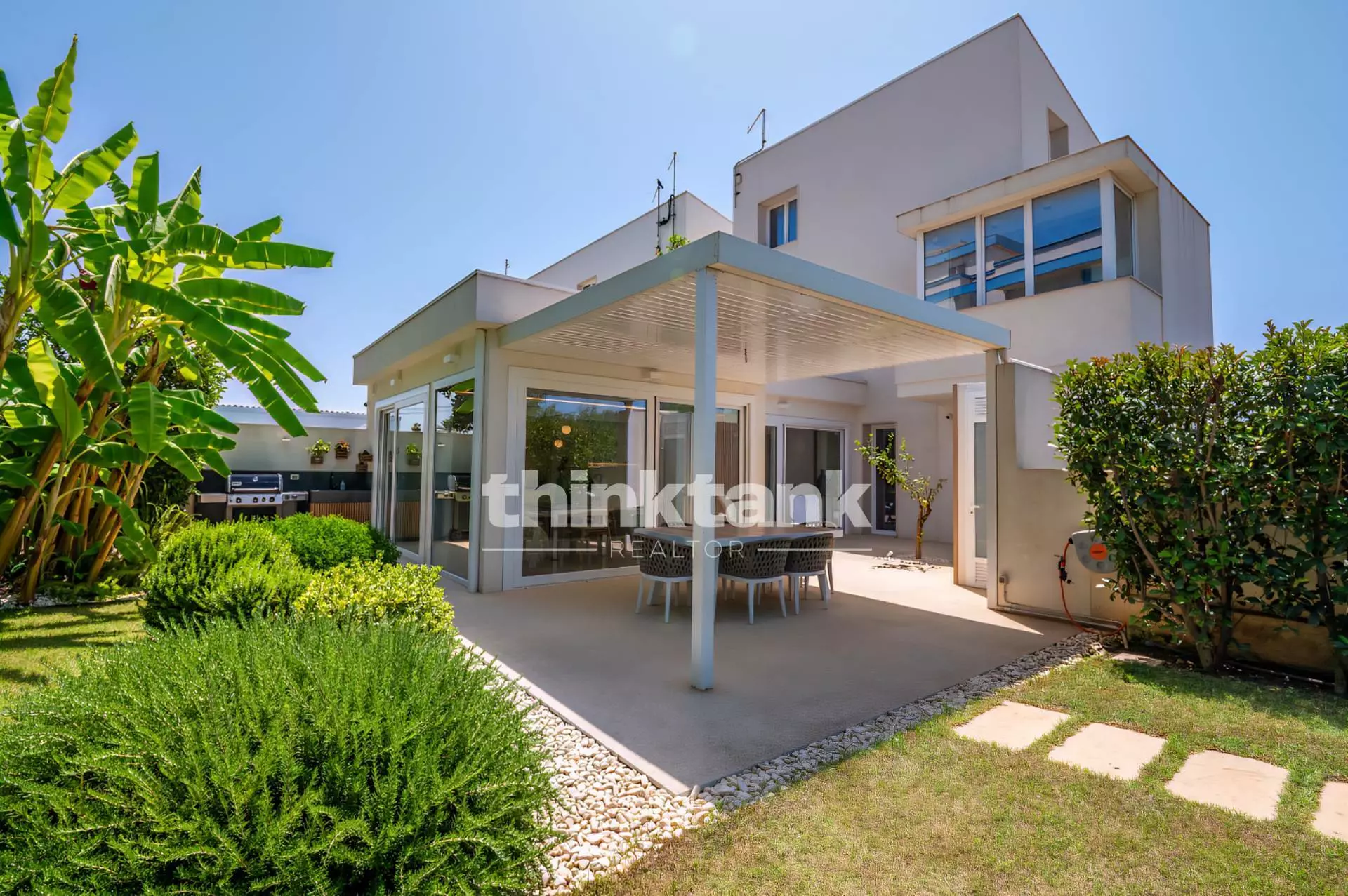 The villa stands on a plot of land of approximately 750 square meters and stands out for its modern comforts and high energy efficiency.