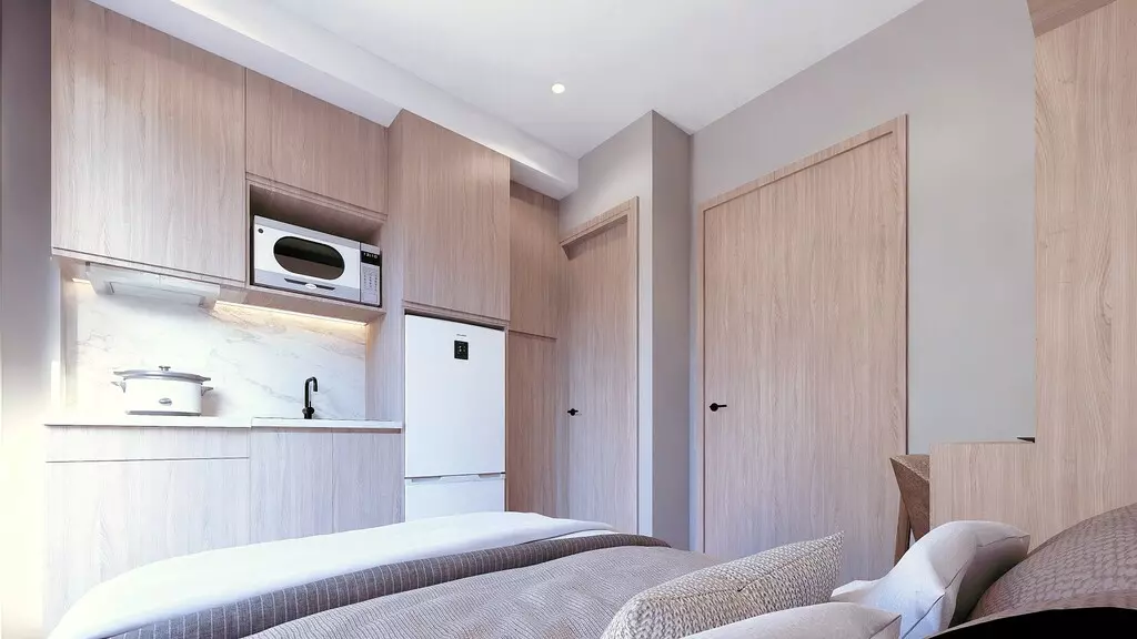 The building itself is equipped with an elevator, which enhances accessibility, especially for those living on the upper floors. This feature can be particularly useful for individuals who prefer not to navigate stairs regularly. The overall structure is designed to meet the basic needs of residents.