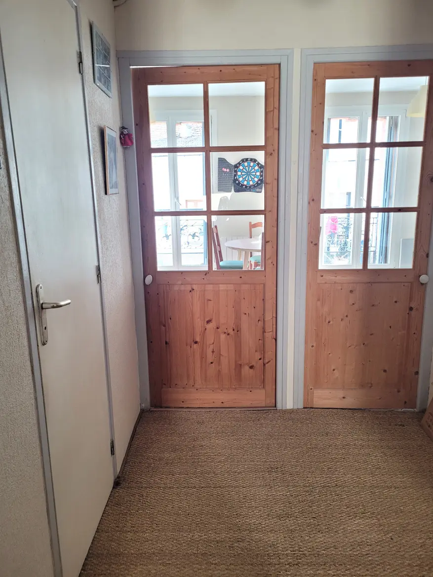 Positioned on the second floor of a traditional maison de maître, this apartment spans 48 m2 and includes two bedrooms. Its location in the village center provides easy access to local services and attractions. The apartment is characterized by its original design elements and thoughtful layout to maximize the available space.