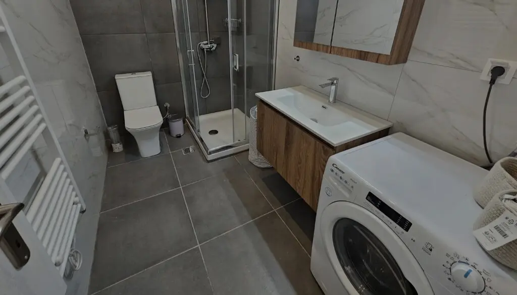The apartment includes air conditioning and heating, providing temperature control throughout the year. These features can be quite beneficial, especially during the warmer months or chilly winters.