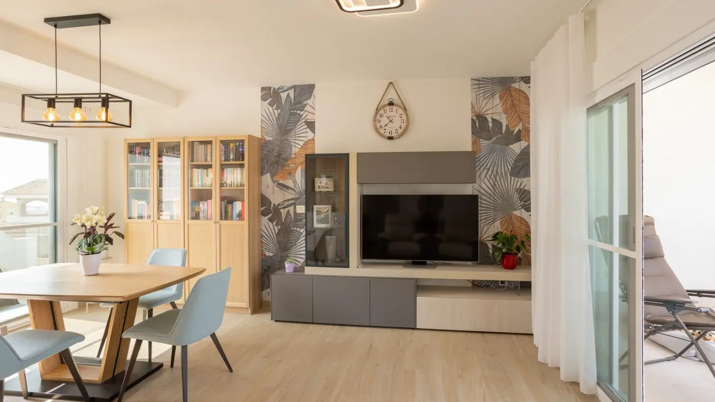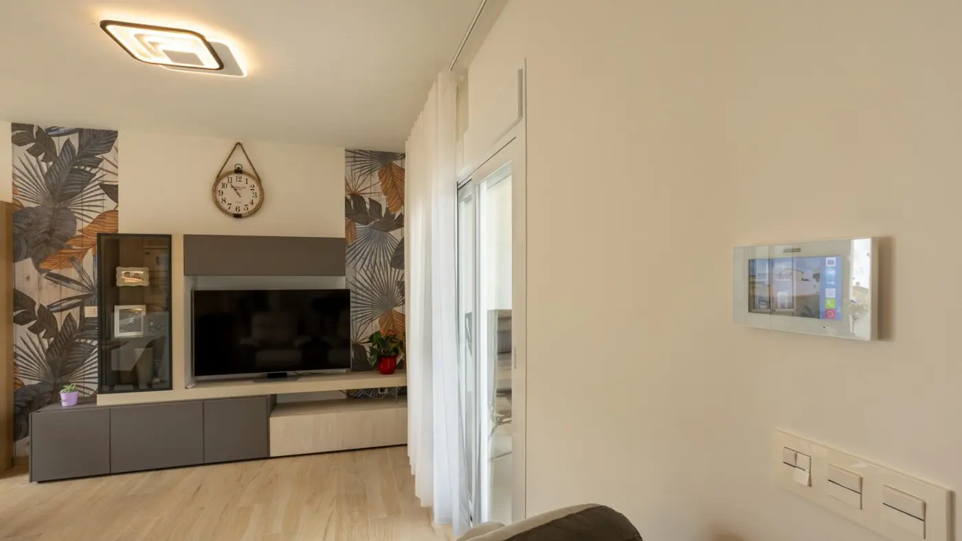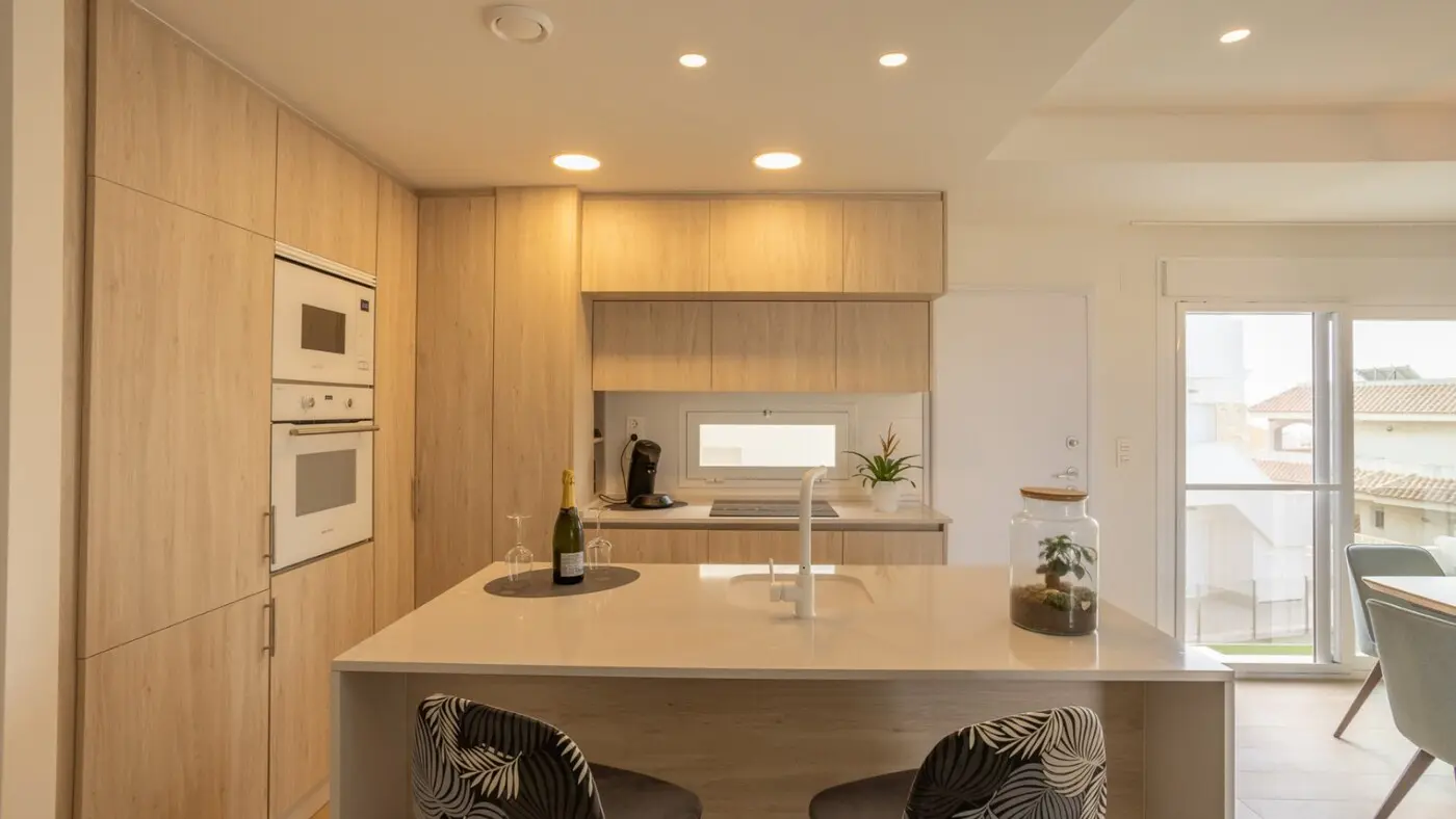 Step into a bright living room that beckons relaxation. The integrated modern kitchen comes equipped with a breakfast bar, perfect for those quick bites or leisurely brunches with friends. The dining area conveniently adjoins a west-facing terrace where you can sip your morning coffee or enjoy an evening glass of wine while soaking up the sunset.