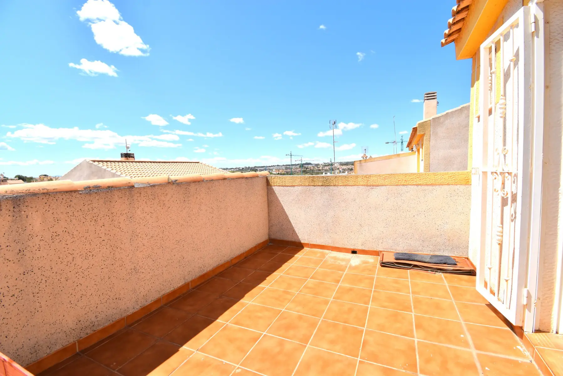 The first floor comprises two double bedrooms. The master bedroom opens up to a private terrace, providing an outdoor escape. There is also a family bathroom on this level.