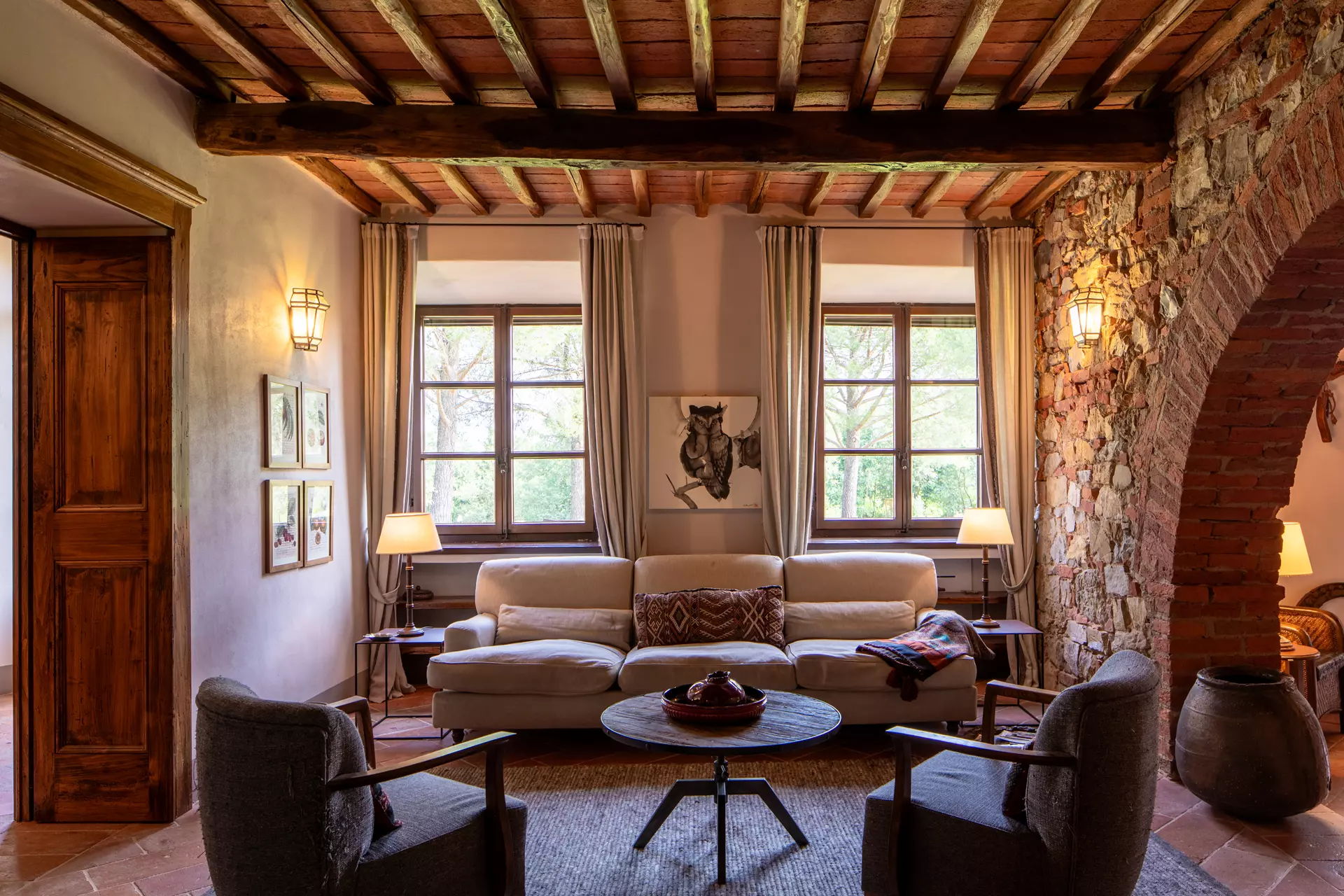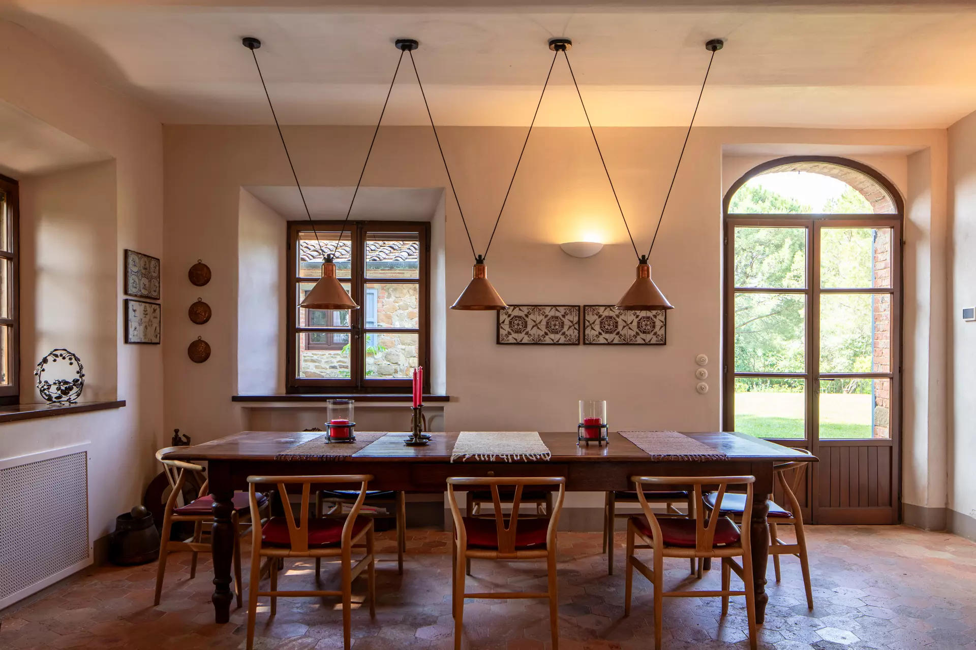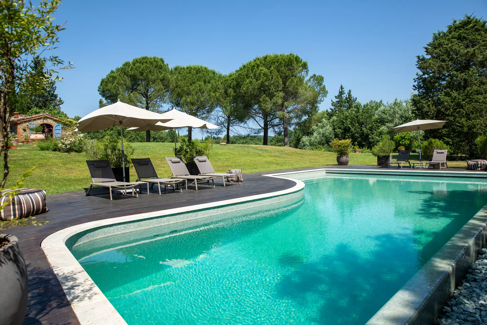 The property consists of a main farmhouse, a finely restored annexe, a splendid newly built infinity pool and over 19 hectares of private land. All restoration work has been carried out with great attention to detail, using original materials to preserve the charm of Tuscan tradition.